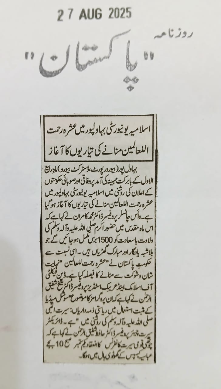 The Islamia University of Bahawalpur was established in the year 1975 by upgrading historical institute of the Jamia Abbasia.