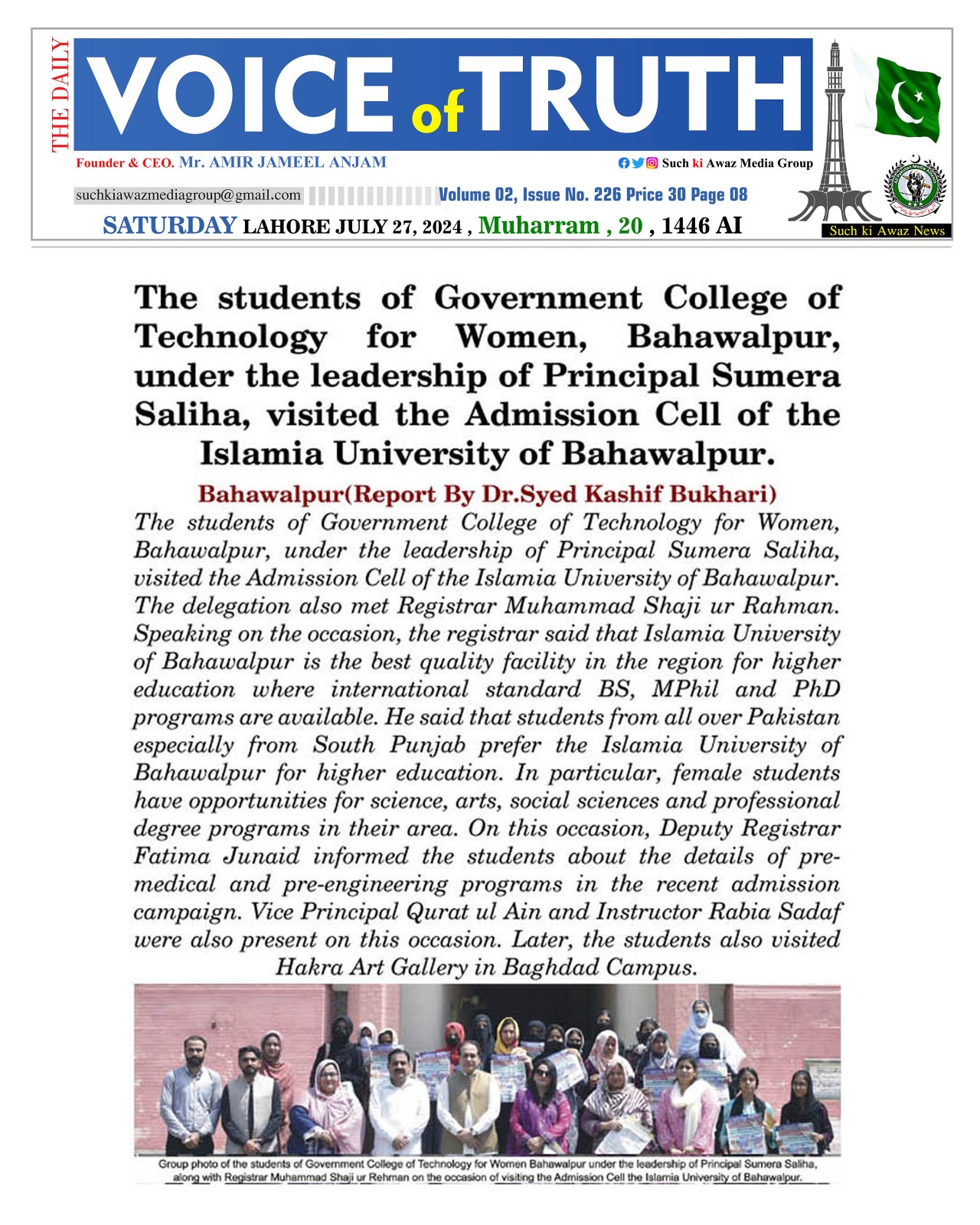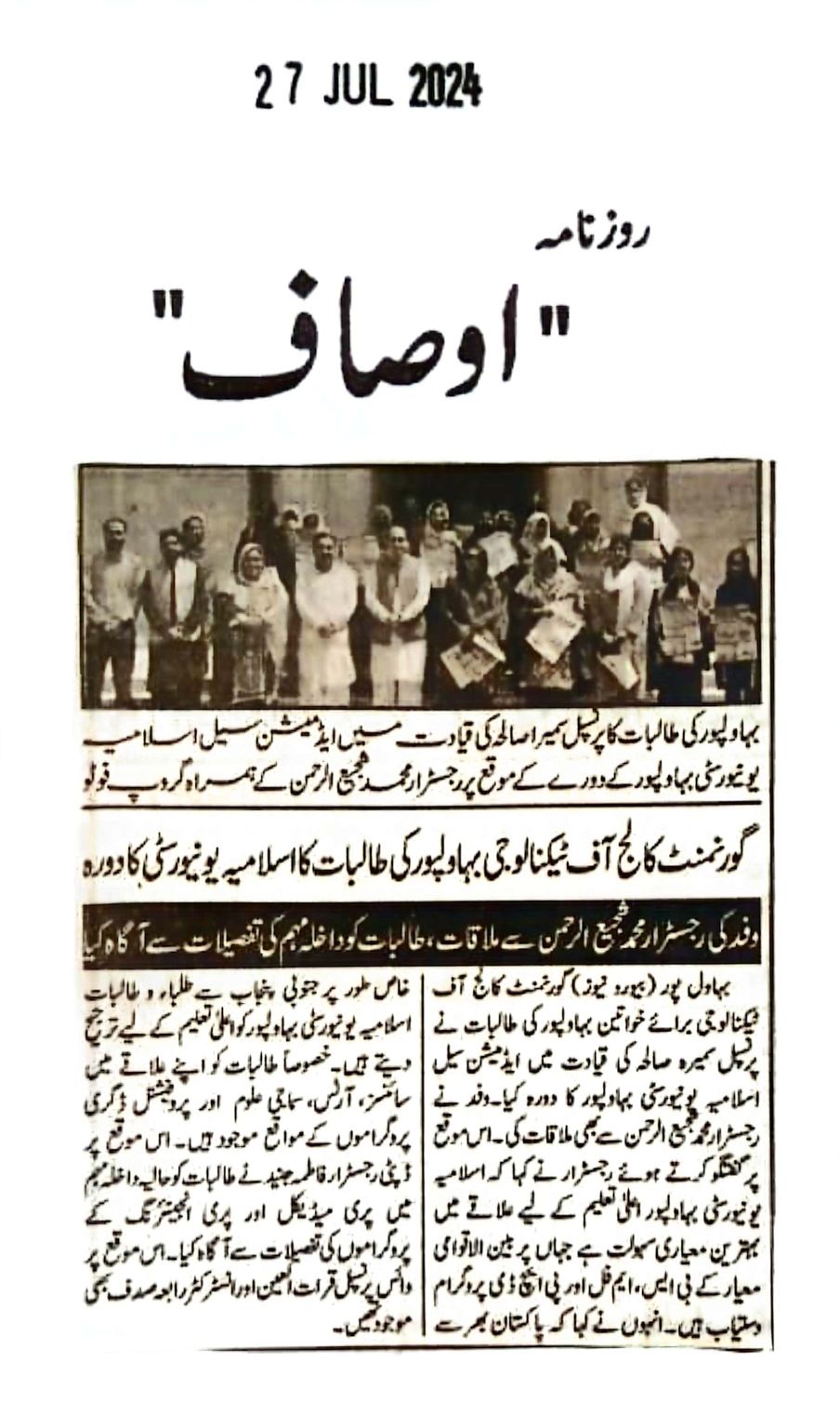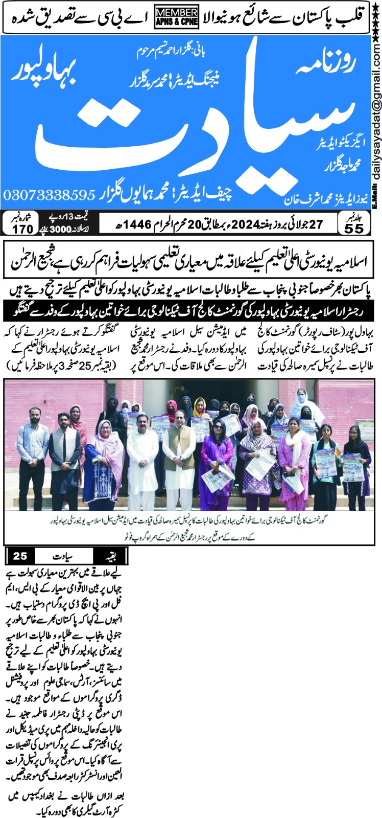 The Islamia University of Bahawalpur was established in the year 1975 by upgrading historical institute of the Jamia Abbasia.