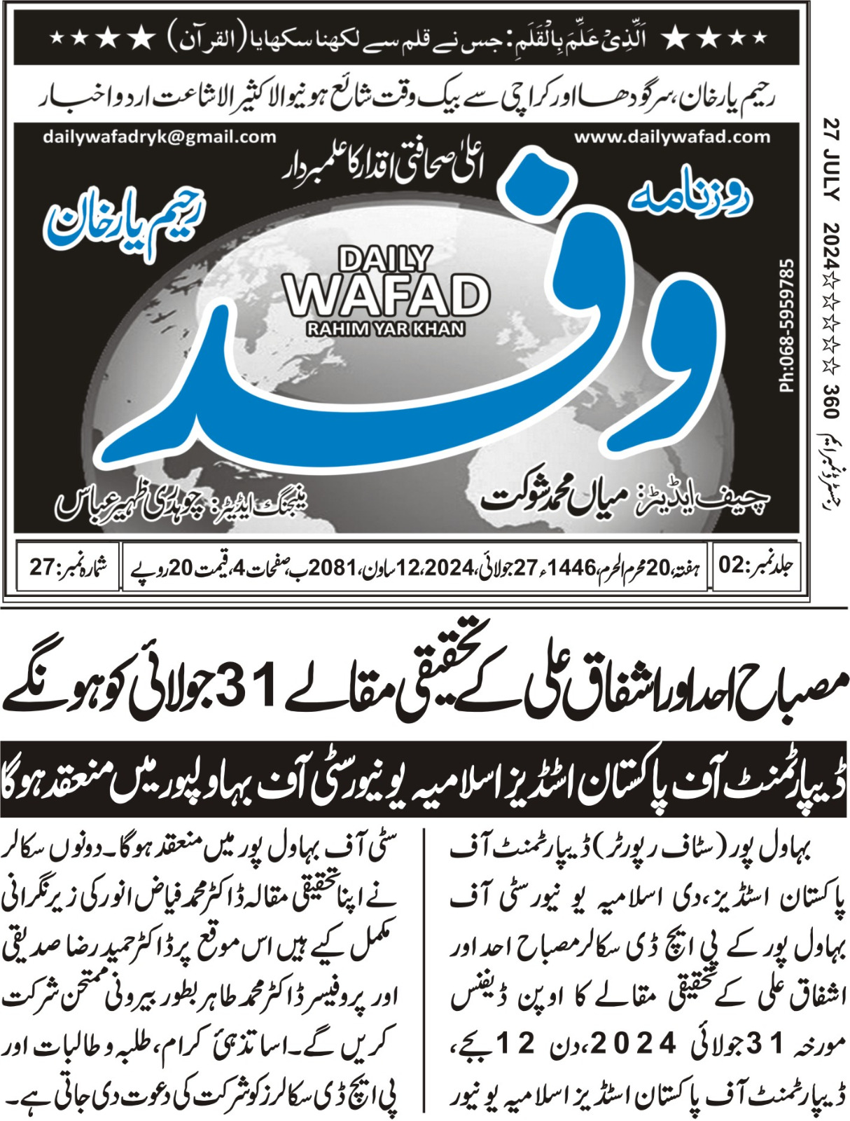 News Cuttings 27 July 2024