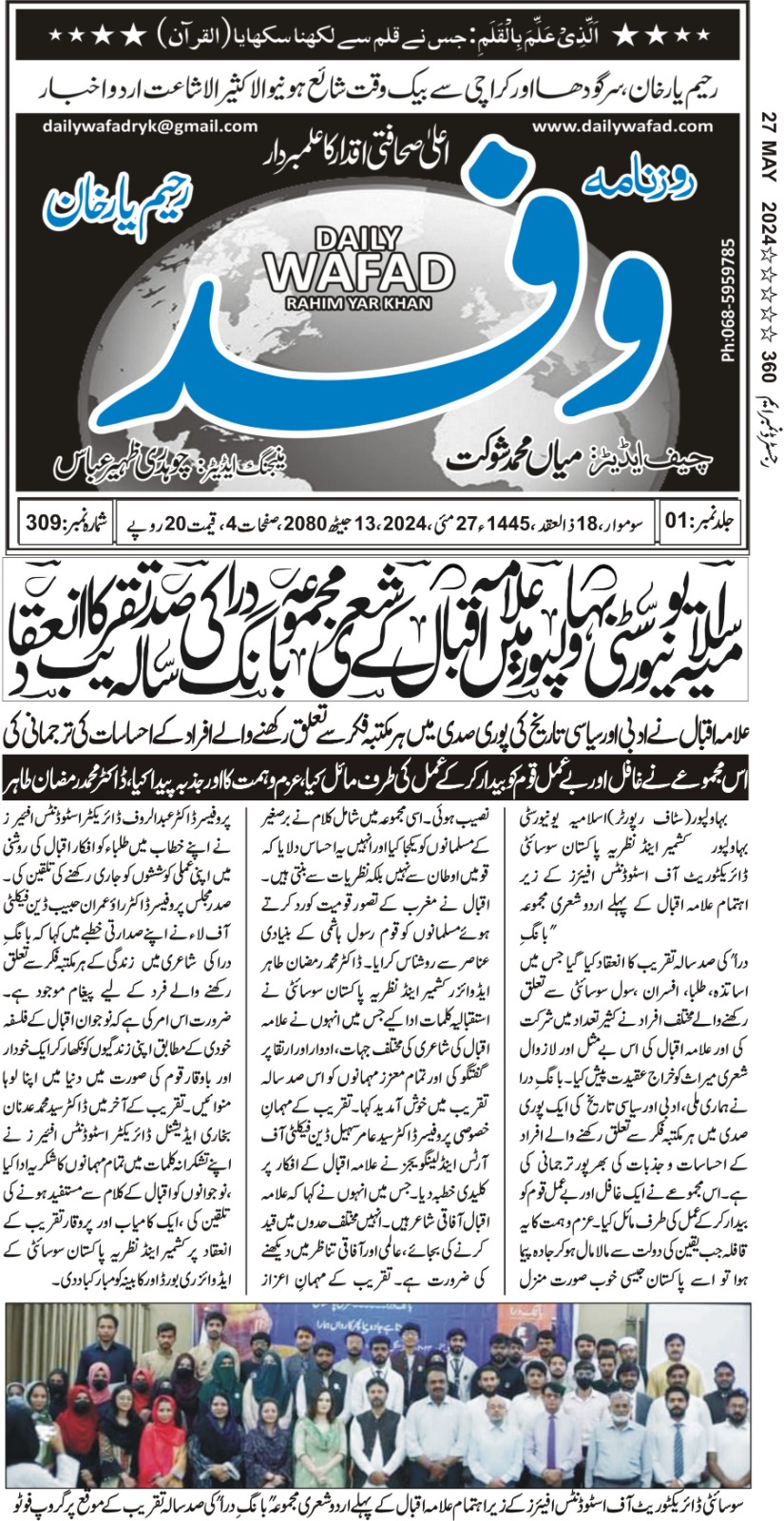 The Islamia University of Bahawalpur was established in the year 1975 by upgrading historical institute of the Jamia Abbasia.