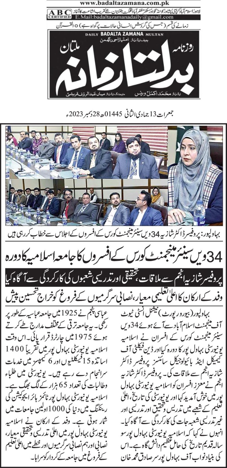 The Islamia University of Bahawalpur was established in the year 1975 by upgrading historical institute of the Jamia Abbasia.