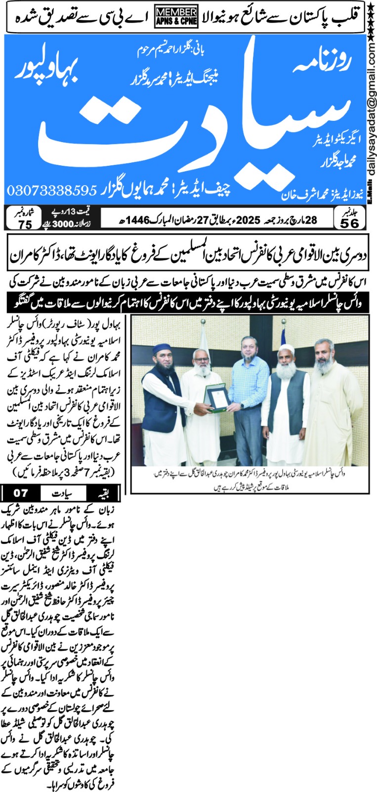 The Islamia University of Bahawalpur was established in the year 1975 by upgrading historical institute of the Jamia Abbasia.