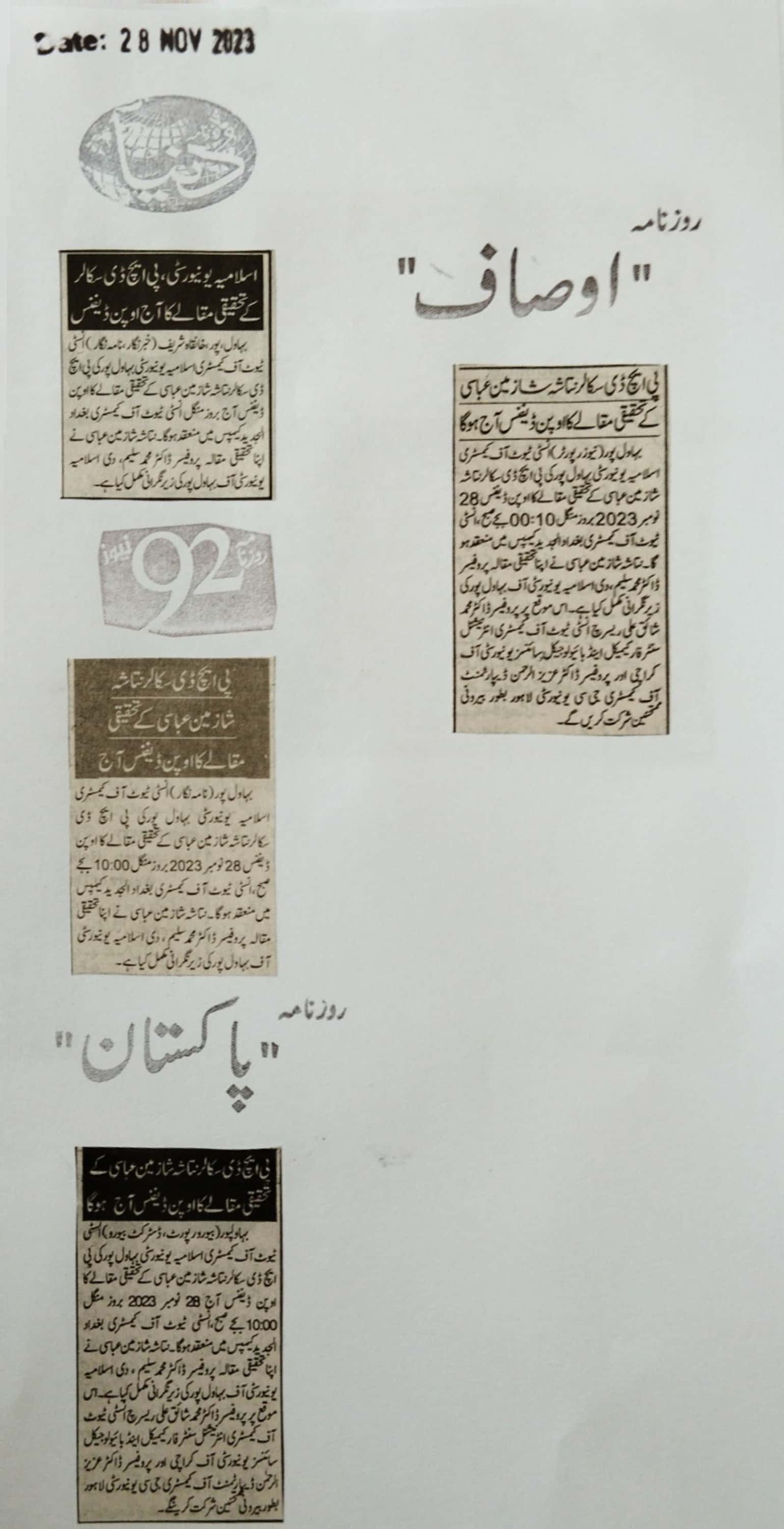 The Islamia University of Bahawalpur was established in the year 1975 by upgrading historical institute of the Jamia Abbasia.