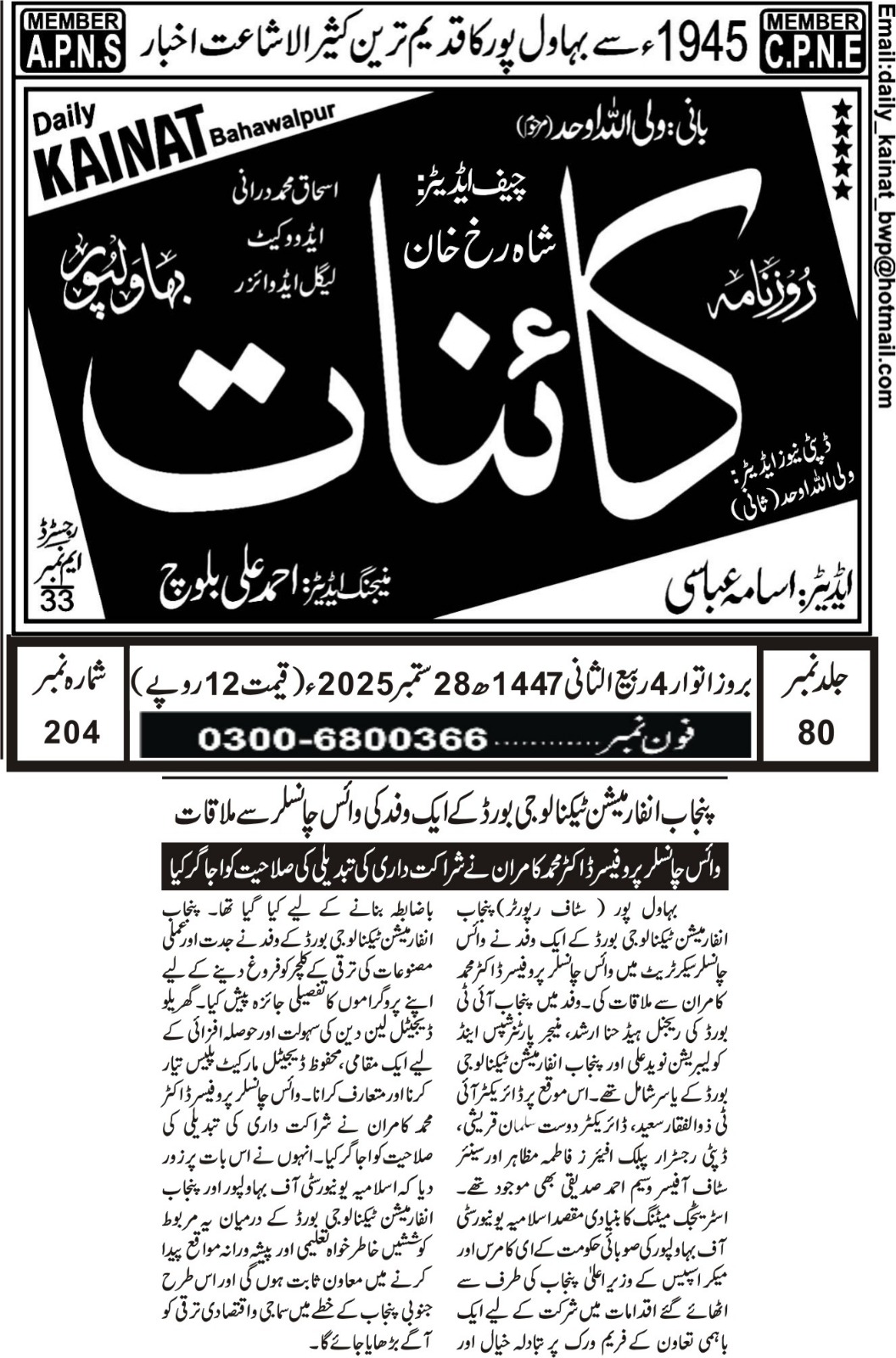 News Cuttings 28 September 2025