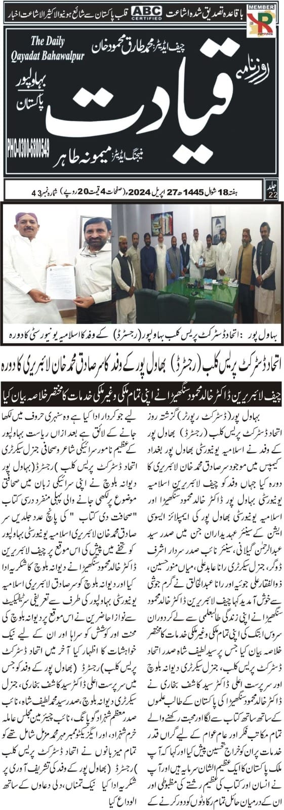 The Islamia University of Bahawalpur was established in the year 1975 by upgrading historical institute of the Jamia Abbasia.