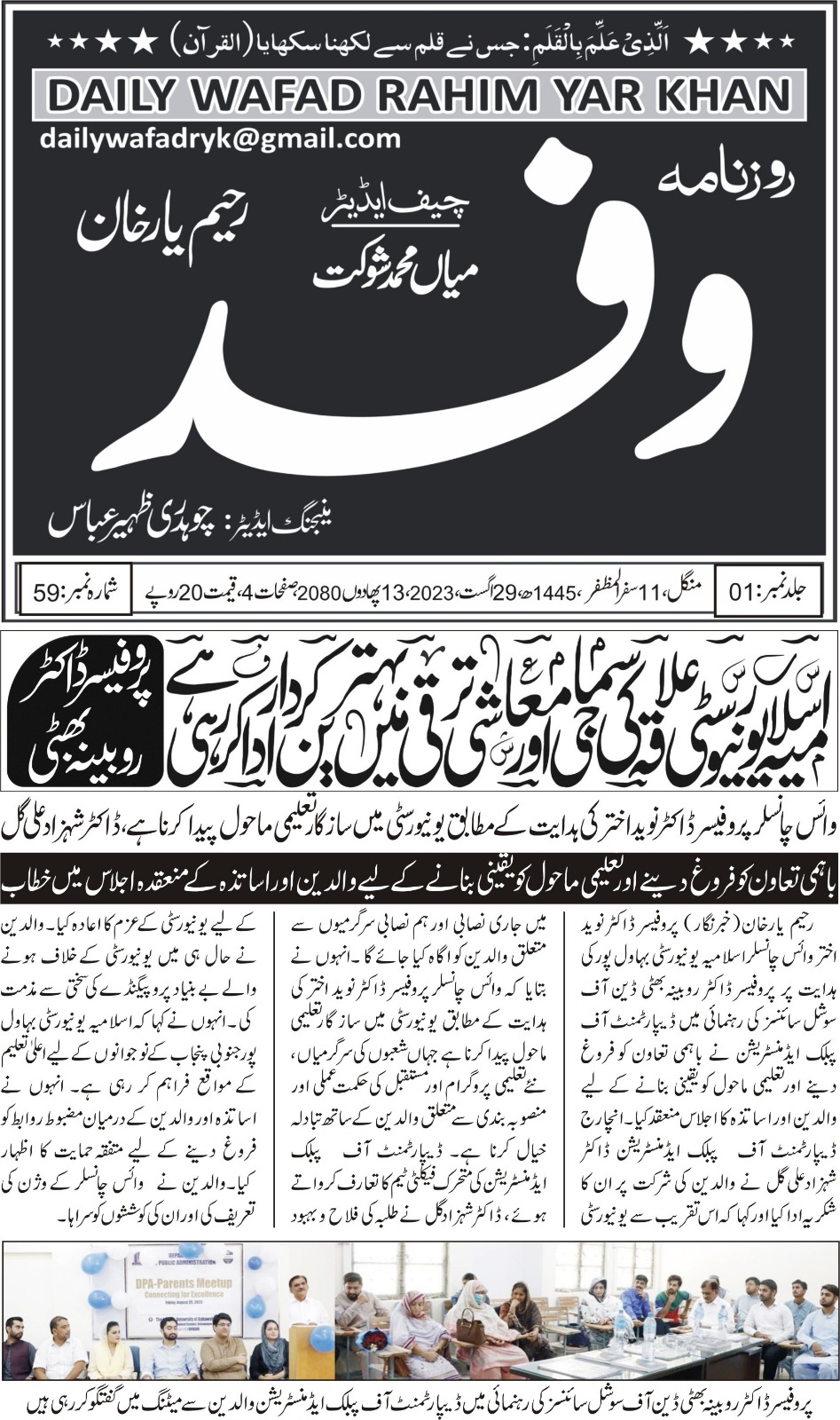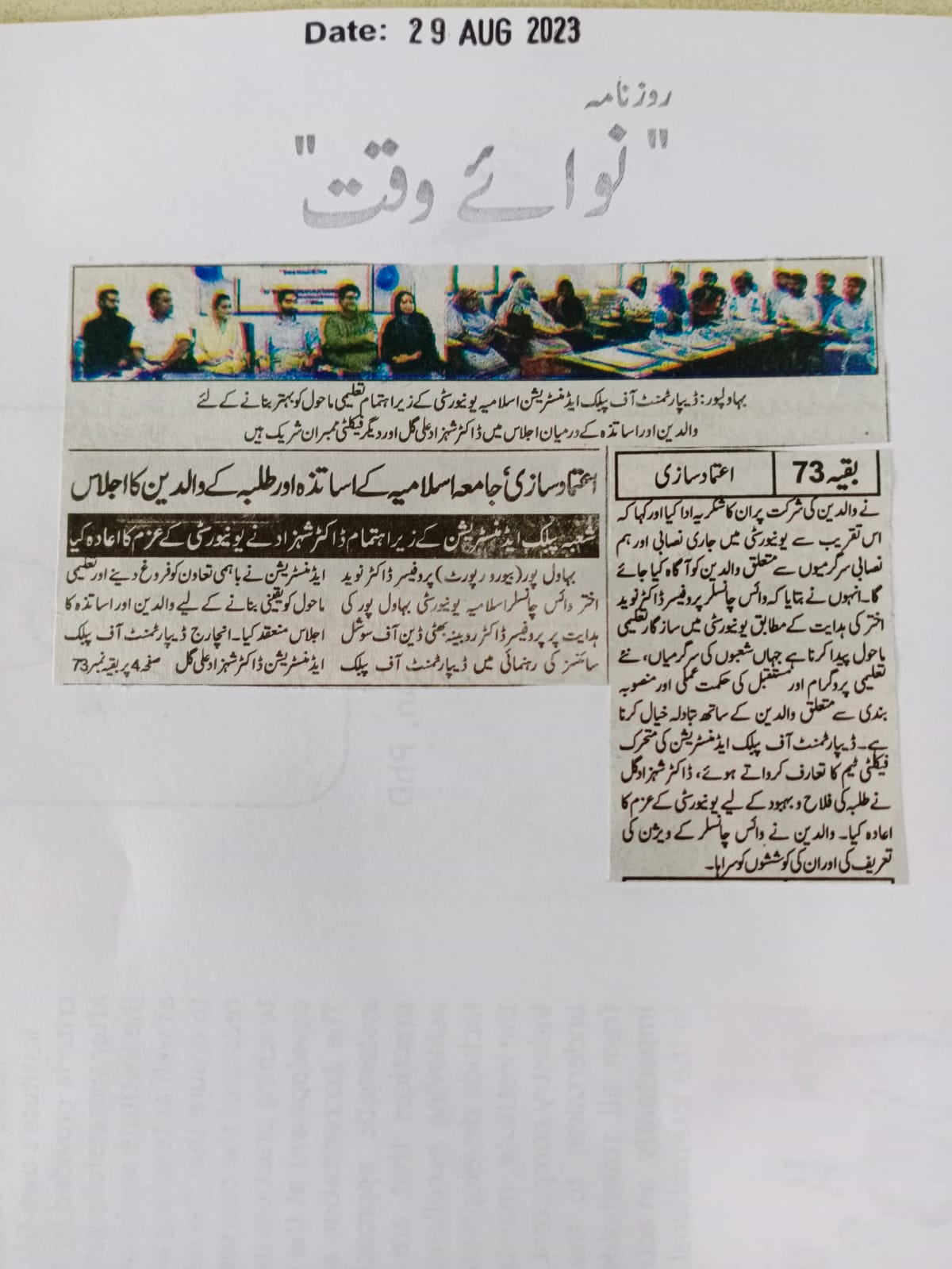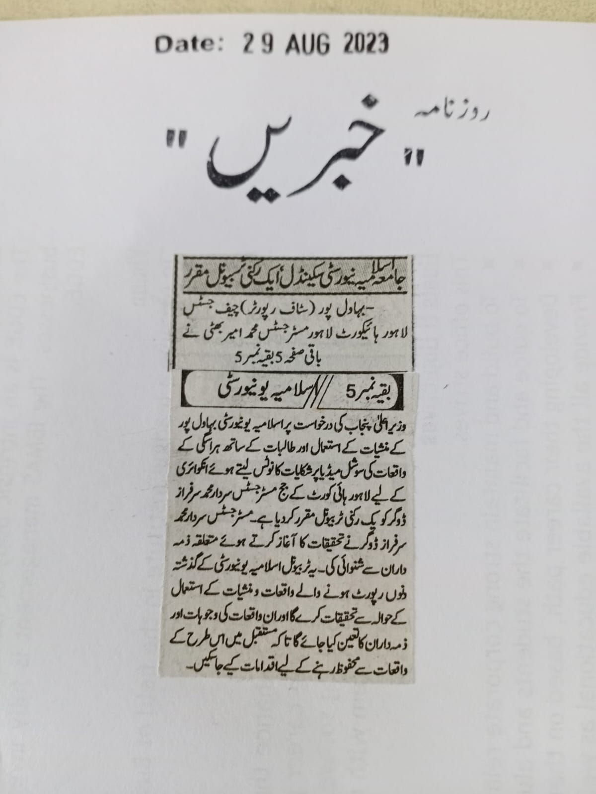 The Islamia University of Bahawalpur was established in the year 1975 by upgrading historical institute of the Jamia Abbasia.