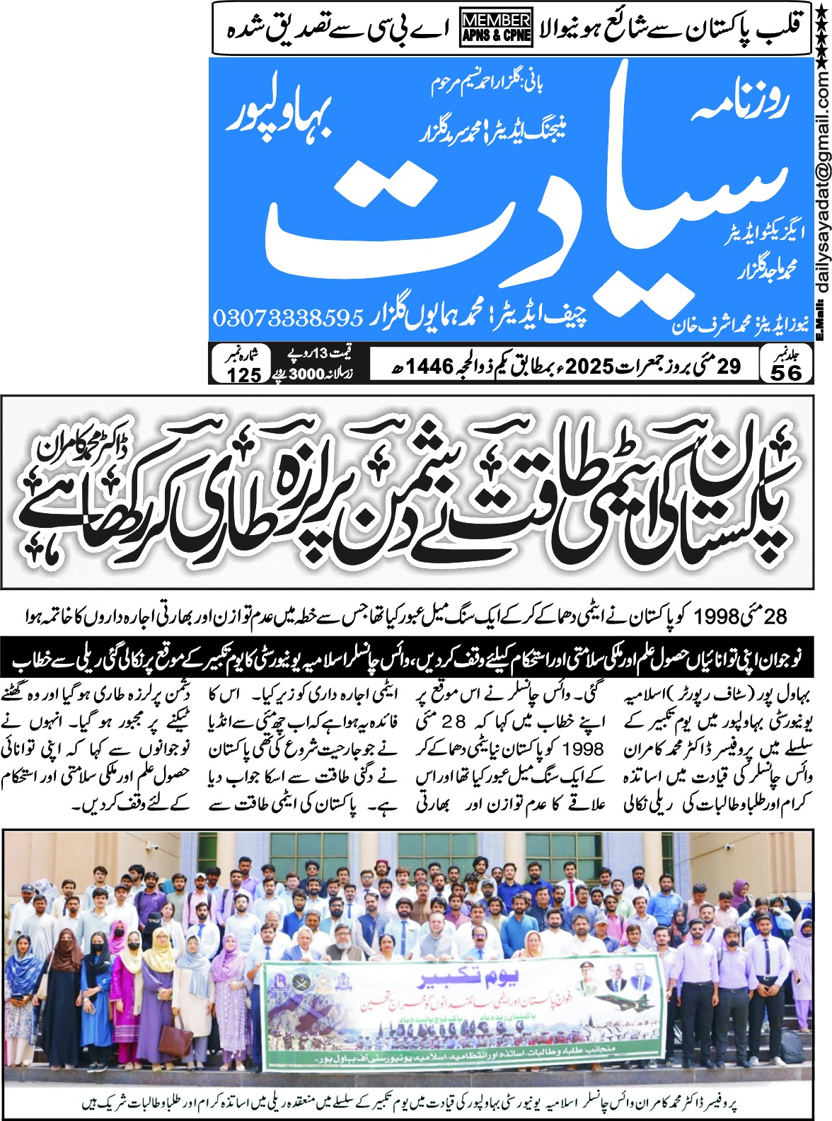 The Islamia University of Bahawalpur was established in the year 1975 by upgrading historical institute of the Jamia Abbasia.