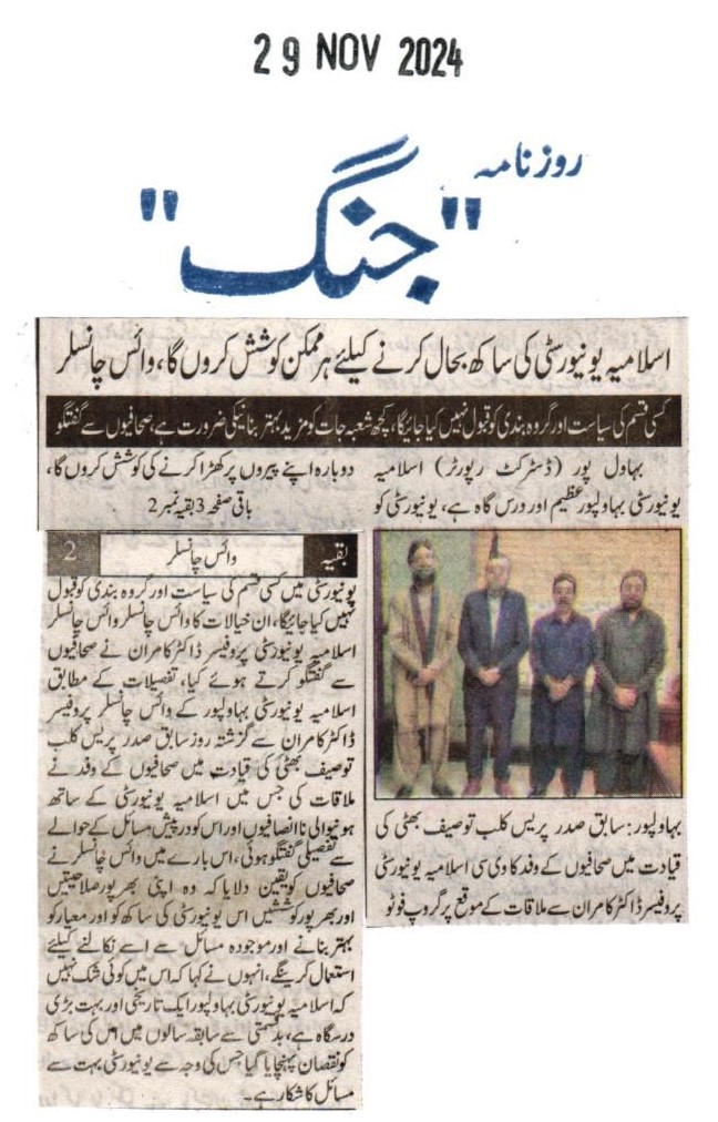 The Islamia University of Bahawalpur was established in the year 1975 by upgrading historical institute of the Jamia Abbasia.