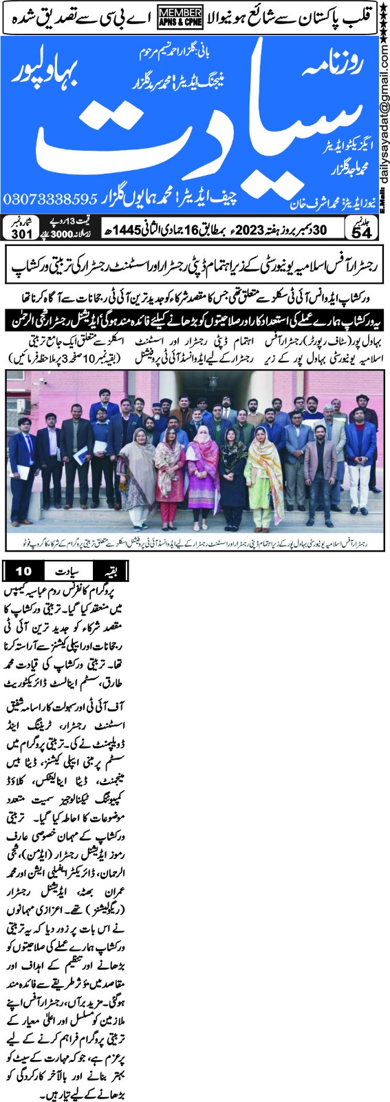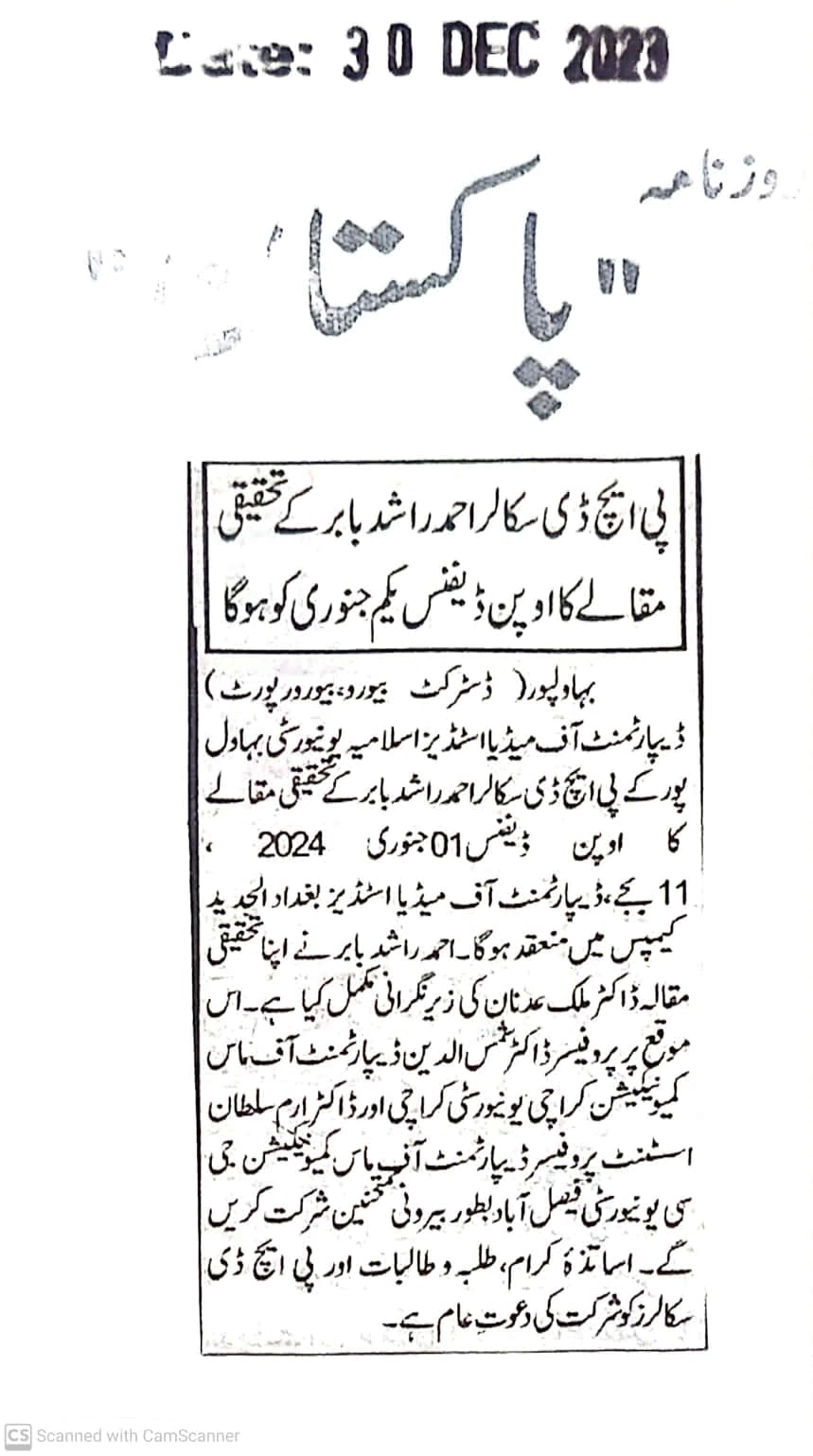 The Islamia University of Bahawalpur was established in the year 1975 by upgrading historical institute of the Jamia Abbasia.
