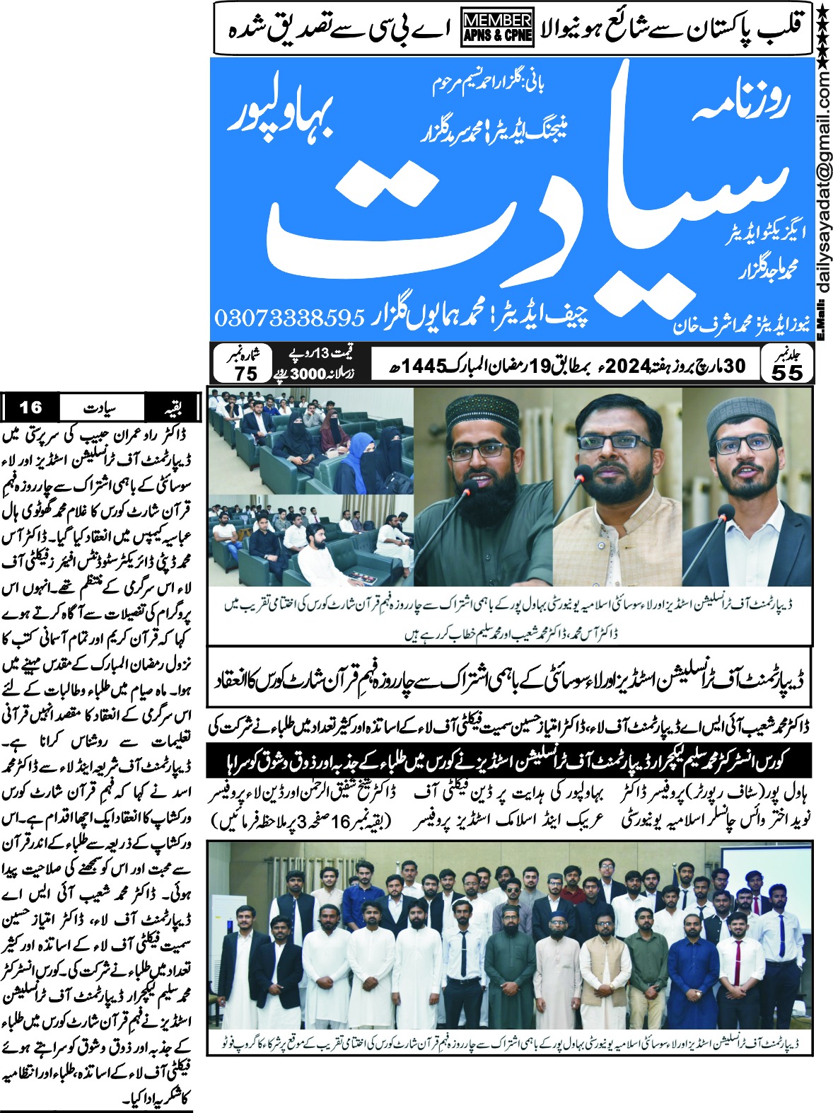 The Islamia University of Bahawalpur was established in the year 1975 by upgrading historical institute of the Jamia Abbasia.
