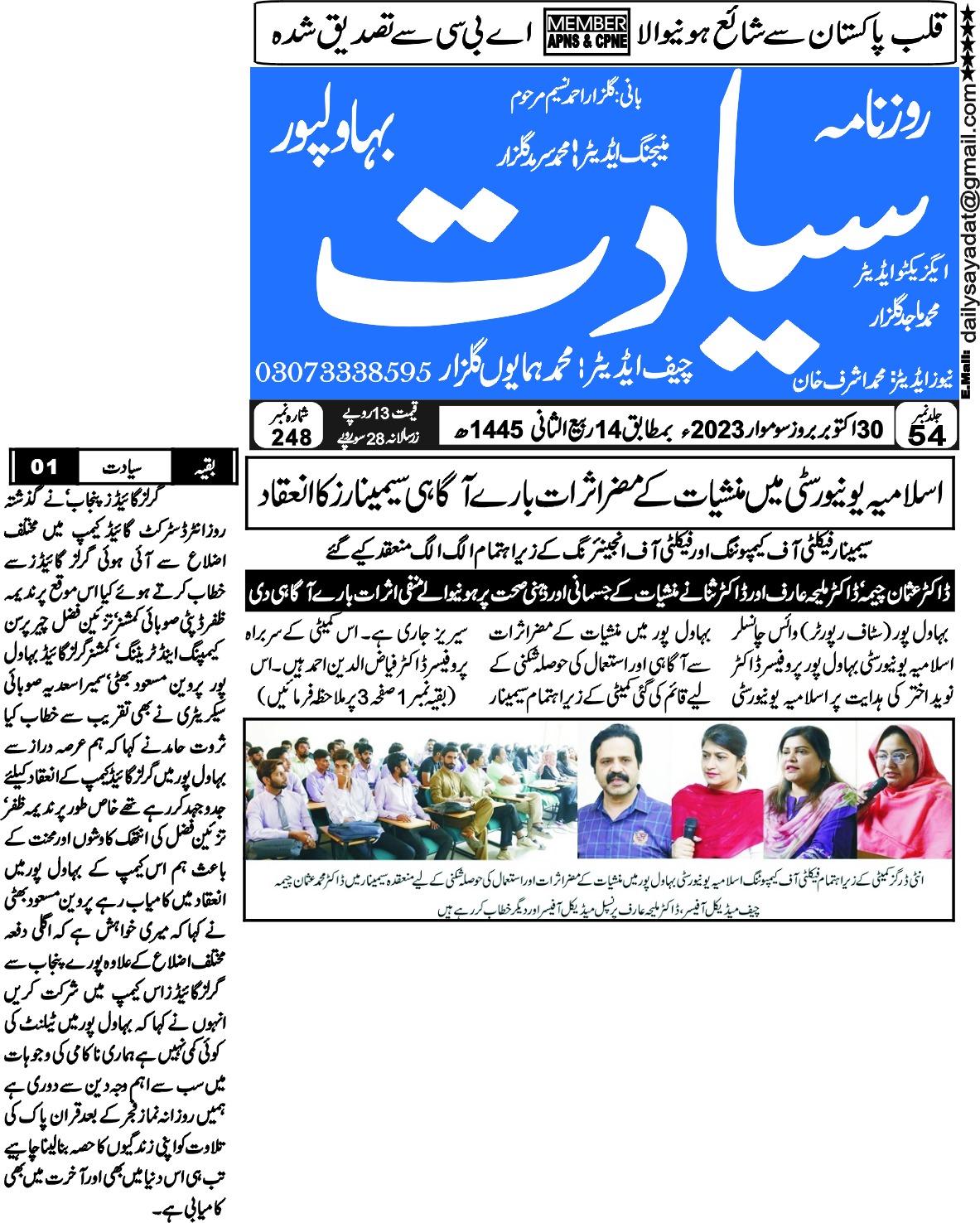 The Islamia University of Bahawalpur was established in the year 1975 by upgrading historical institute of the Jamia Abbasia.