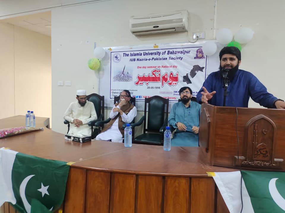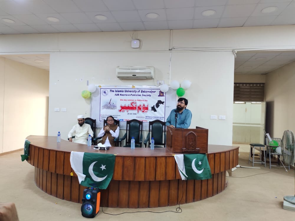 The Islamia University of Bahawalpur Nazari-e-Pakistan Society organized a one-day seminar on the occasion of Takbir Day 2022. Dr. Syed Tabish Alwari (Parliamentarian and Head of the Ideology of Pakistan Forum Bahawalpur) and Mr. Rizwan Majeed (Director of Student Affairs and IT) were the special guests on the occasion.