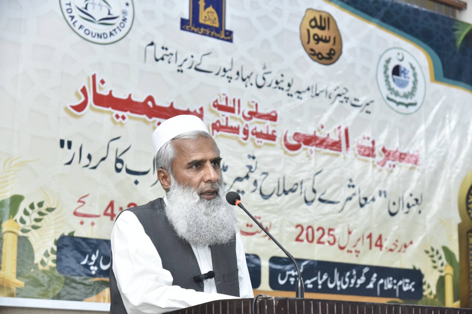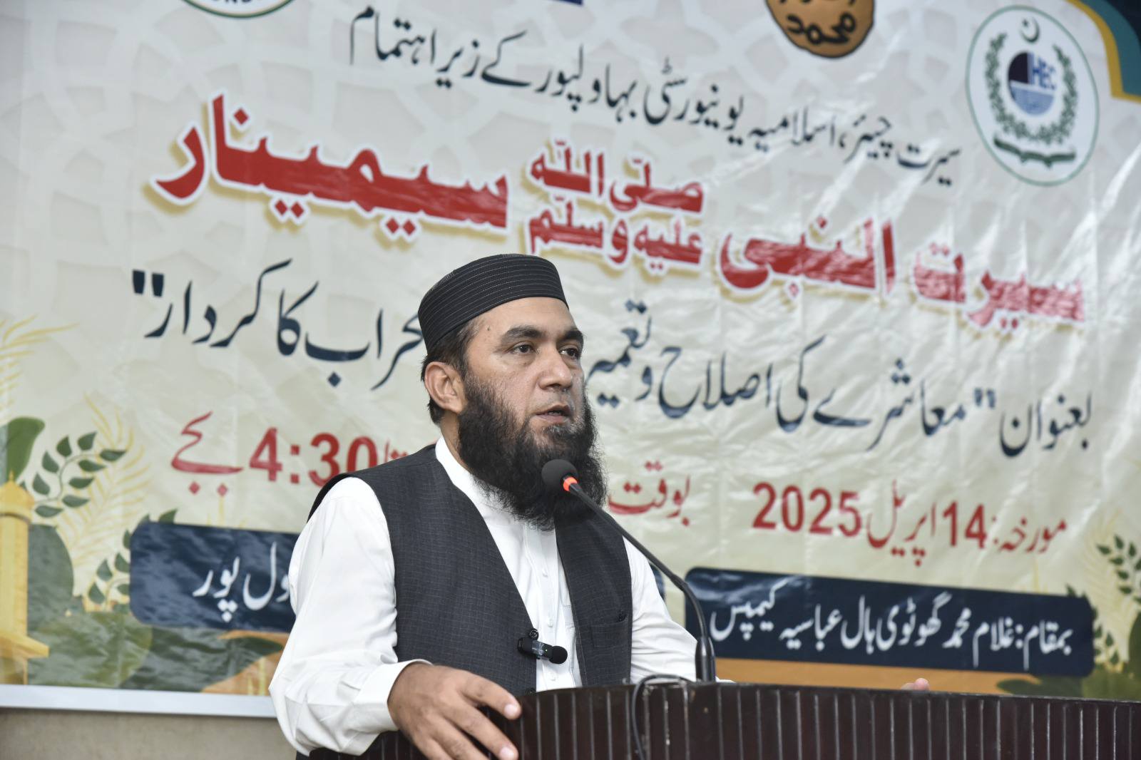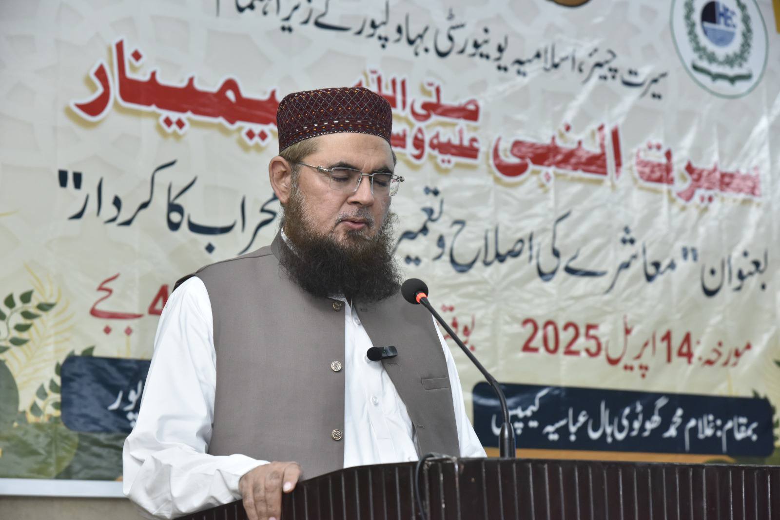 14 April 2025: Seerat Chair of the Islamia University of Bahawalpur, organized a one-day seminar titled The Role of Pulpit and Mihrab in the Reformation and Development of Society at Ghulam Muhammad Ghotvi Hall, Abbasia Campus. A large number of imams and preachers from mosques in and around Bahawalpur city participated in it.