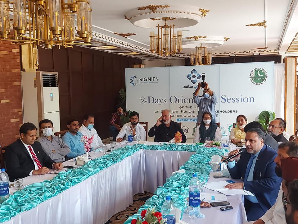Engr. Prof. Dr. Athar Mahboob, Worthy Vice Chancellor, the Islamia University of Bahawalpur addresses to participants of Orientation Session of South Punjab Multistakeholders Working Group of civil society organizations, provincial government, parliamentarians, religious educational institutes and Vice Chancellors of Universities at Multan