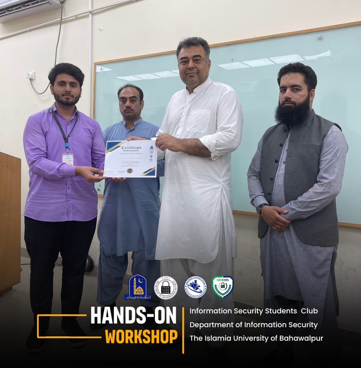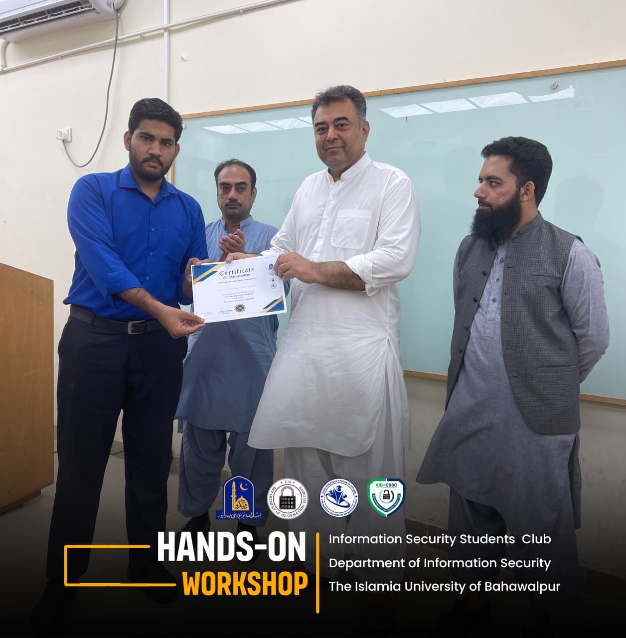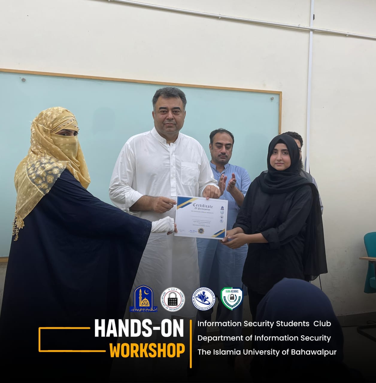 On the direction of HoD Prof. Dr. Waqar Aslam, The Department of Information Security arranged a practical workshop "Cyber security Lab day" on May 23, 2024. The aim of this workshop was to teach the students with real-world information / Cyber Security practices and technologies.