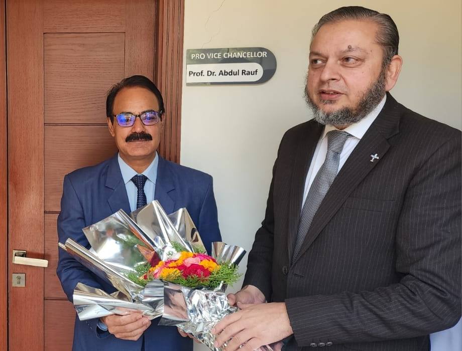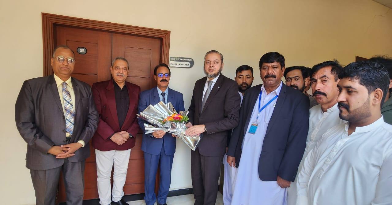 19-01-2026: In a significant administrative development at the university, Pro Vice-Chancellor Prof. Dr. Abdul Rauf officially assumed his new responsibilities today, formally joining his office at the Vice-Chancellor Secretariat. The transition was marked by a warm professional reception, where the Vice-Chancellor, Prof. Dr. Muhammad Kamran, personally extended his congratulations and best wishes