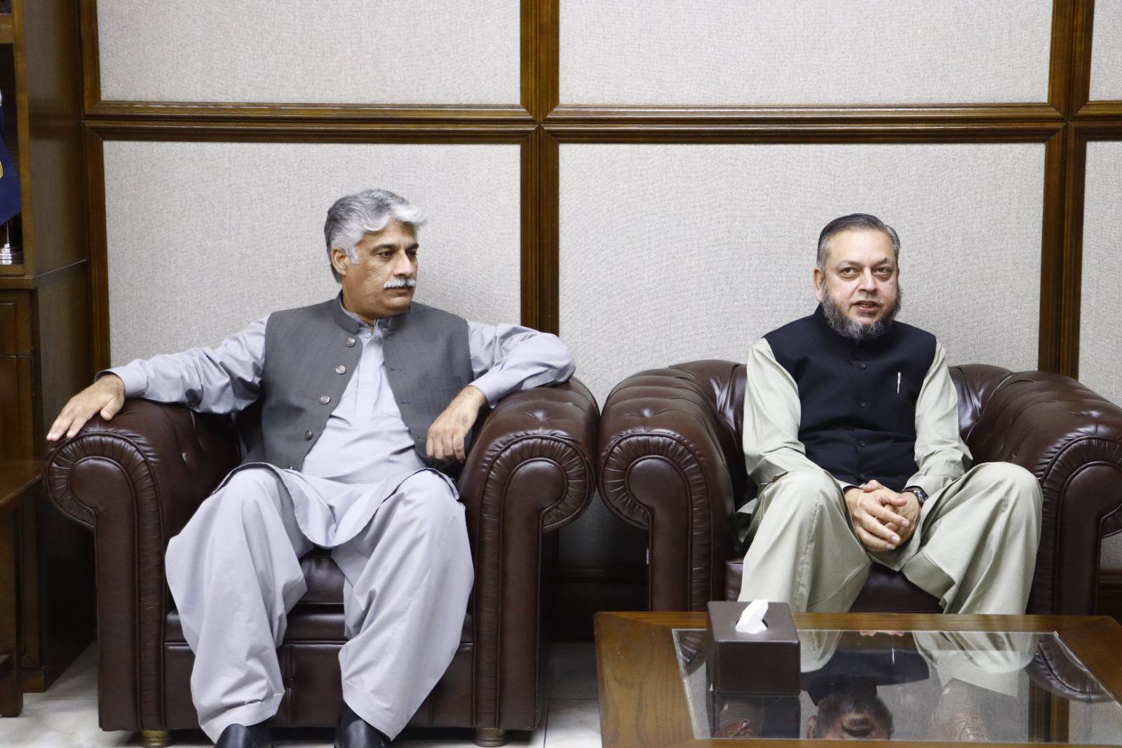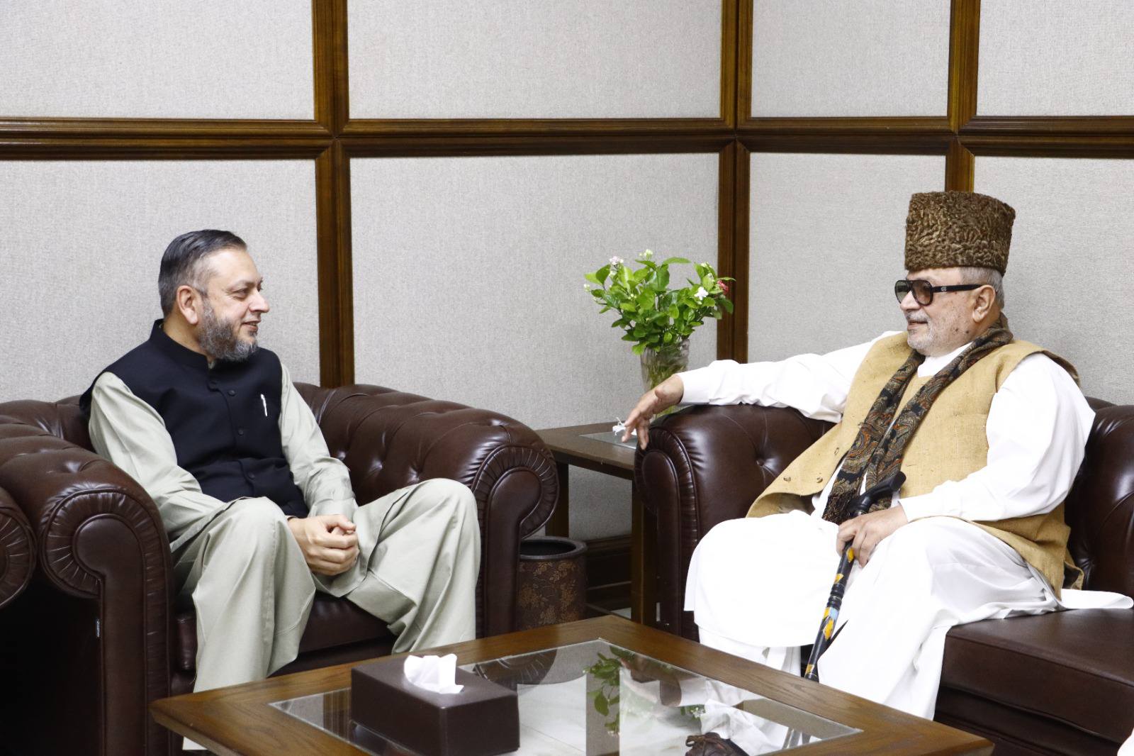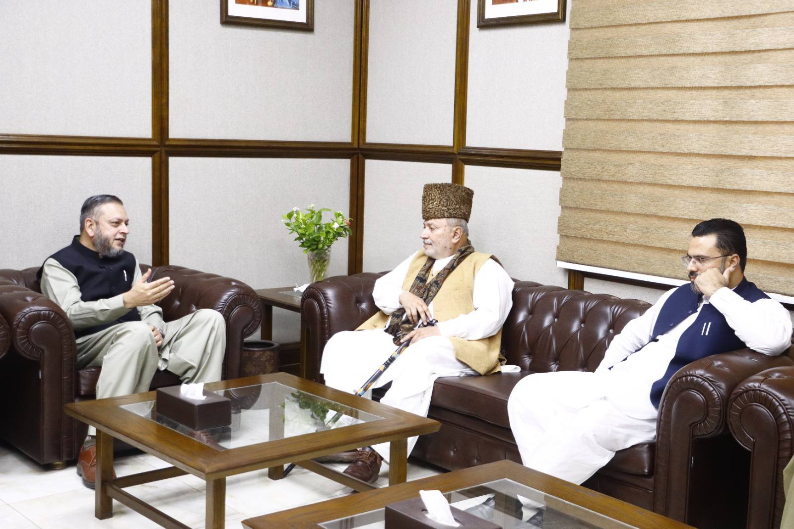 Khawaja Mueen Ud Din Mehboob Koreja, Sajjada Nasheen Darbar-e-Farid, Kot Mithan Shareef; Mian Muhammad Shoaib Awaisi, Member Provincial Assembly/IUB Syndicate Member; and Khawaja Rawal Moeen Koreja met Worthy Vice Chancellor Prof. Dr. Muhammad Kamran at the Baghdad-ul-Jadeed Campus.