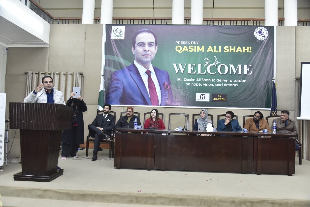 Renowned motivational speaker Qasim Ali Shah visited the Islamia University of Bahawalpur and attended a seminar organized by the IUB Character Building Society, Directorate of Students Affairs.