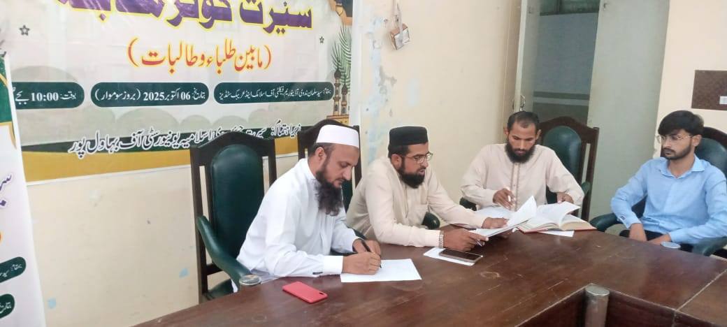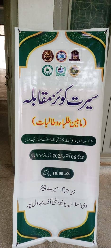 On October 6, 25th, the Seerat Chair organized a Seerat Quiz Competition under the leadership of Prof. Dr. Muhammad Kamran, Vice Chancellor of Islamia University of Bahawalpur. The event commemorated the 1500th birth anniversary of Prophet Muhammad (PBUH), as well as the university's 100-year academic journey. this event was organized at Conference Hall, Faculty of Islamic and Arabic Studies.
