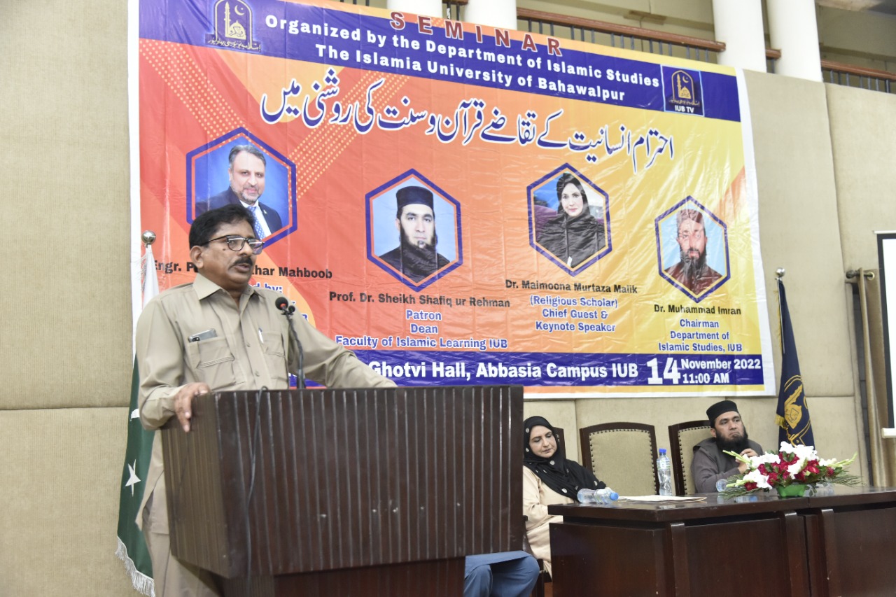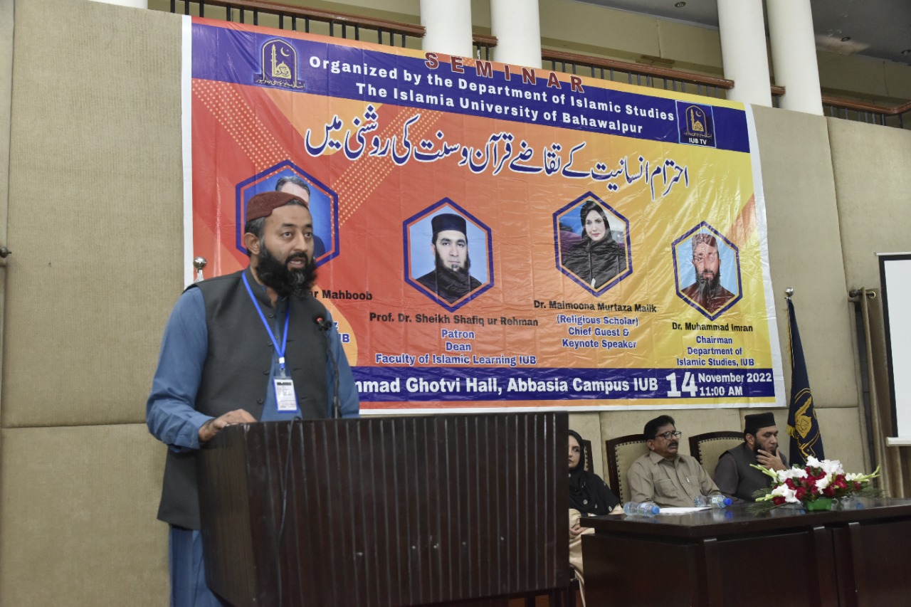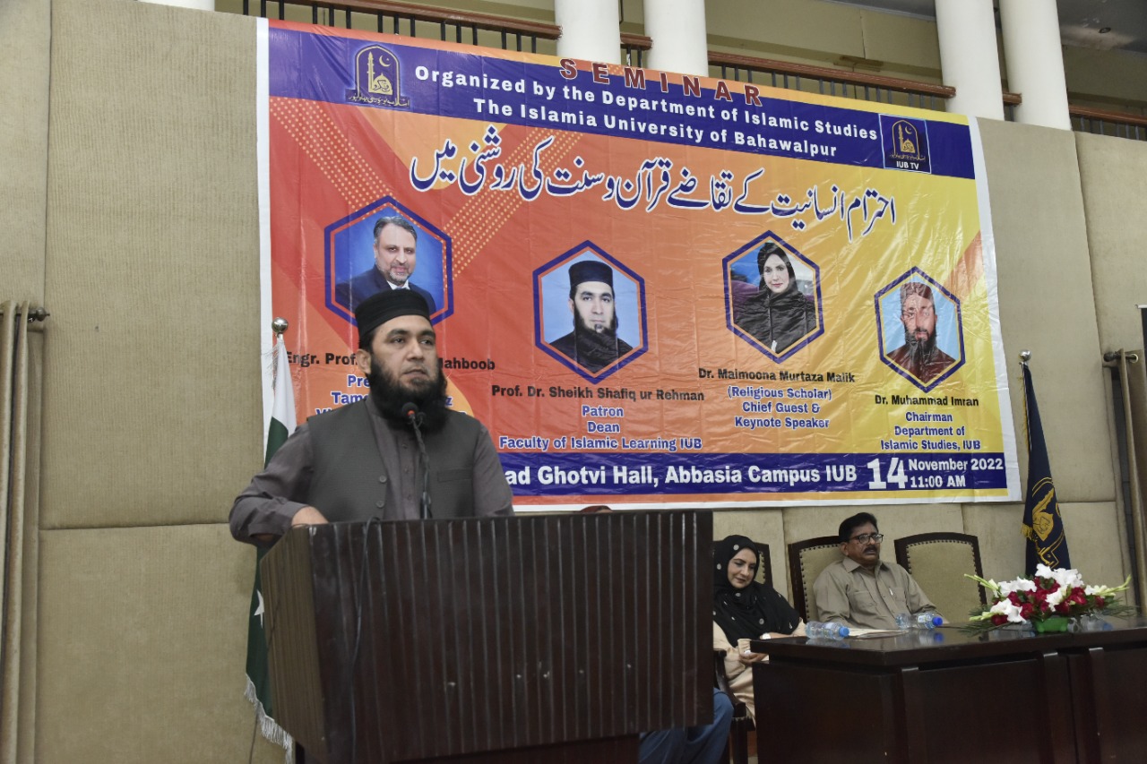 Seminar on "احترام انسانیت کے تقاضے قرآن و سنت کی روشنی میں" organized by Department of Islamic Studies