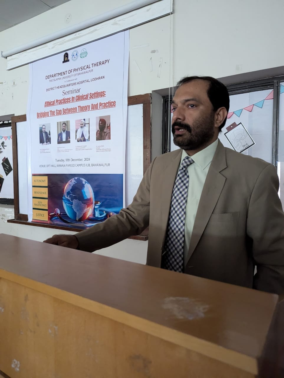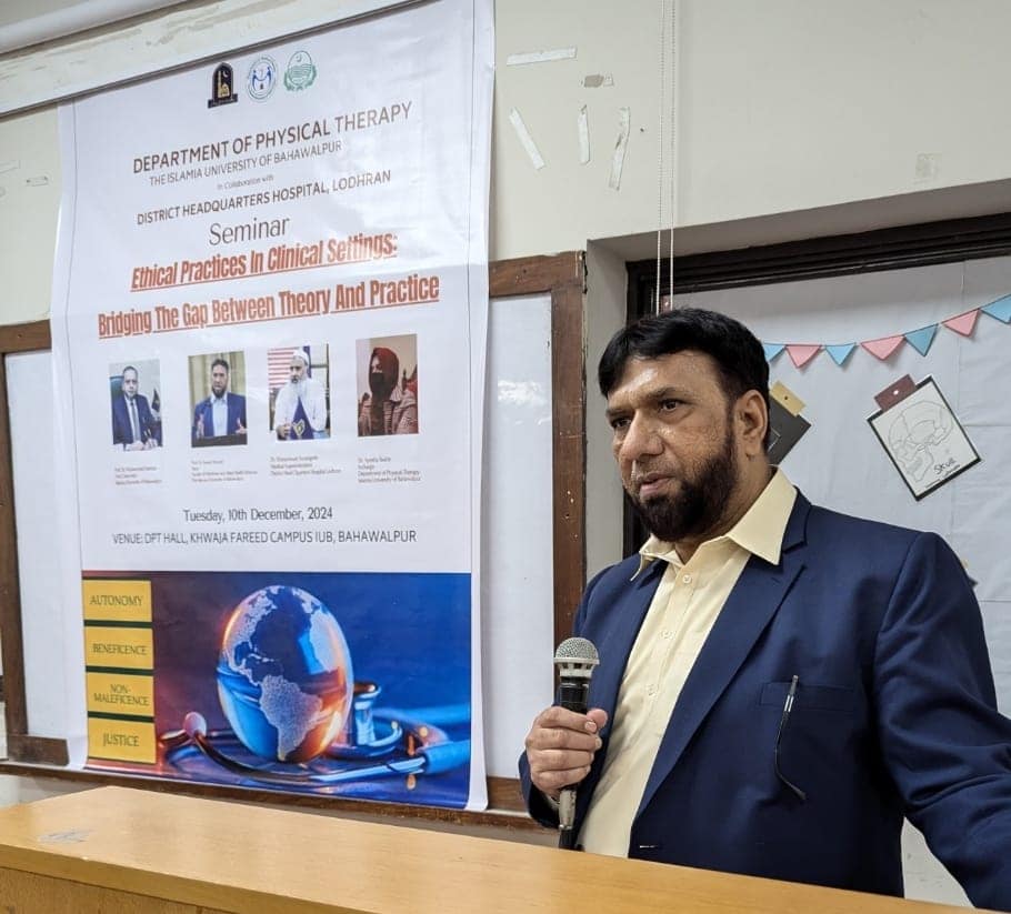 The Department of Physical Therapy, in collaboration with District Headquarters (DHQ) Hospital, Lodhran conducted a seminar on medical ethics titled as: "Ethical Practices in Patient Care: Bridging the Gap Between Theory and Practice."