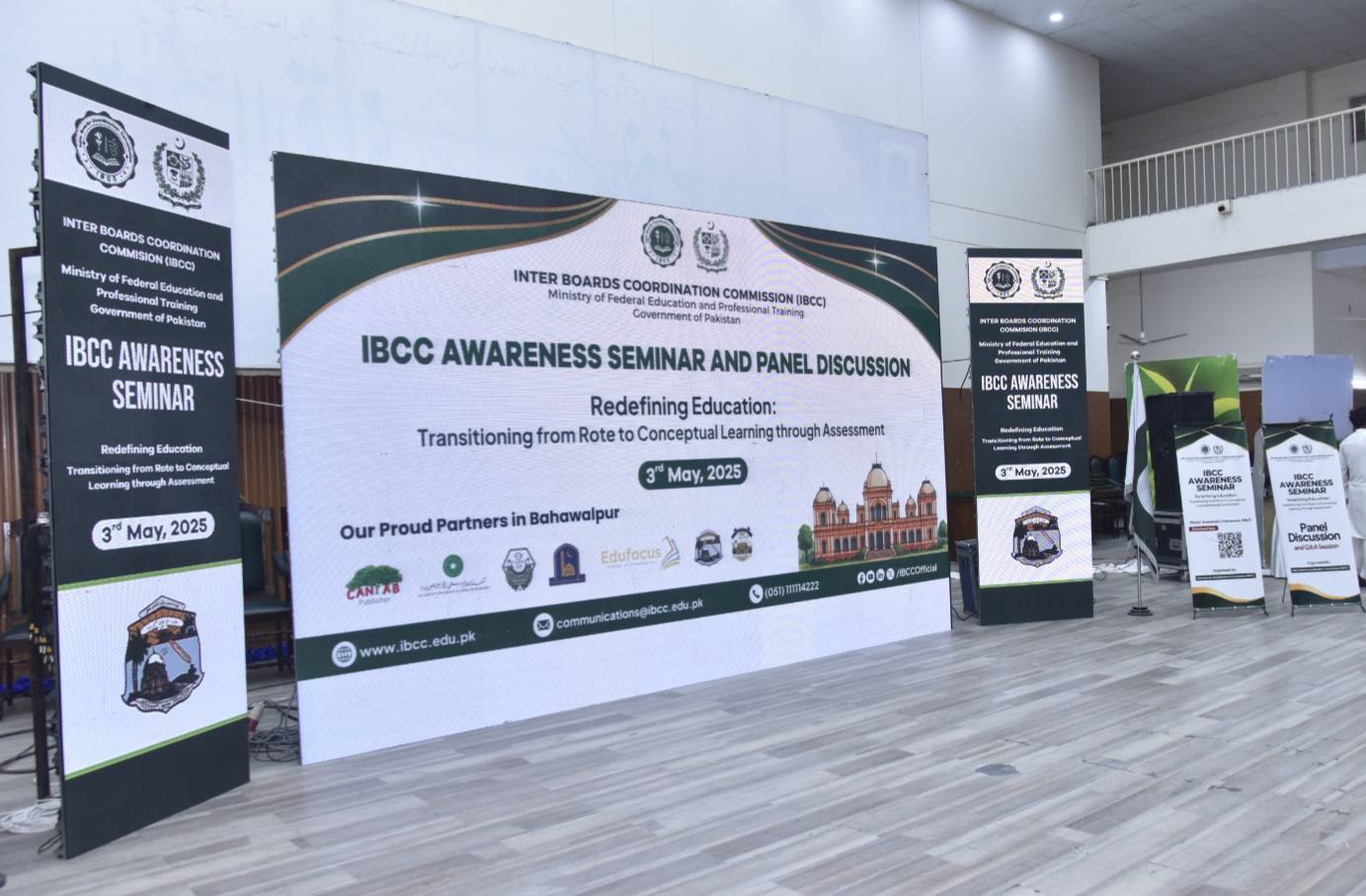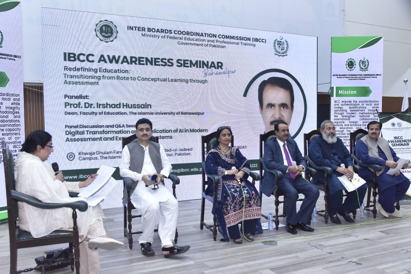 03 May 2025: The Inter Boards Coordination Commission (IBCC) organized a one-day awareness seminar on the theme “Redefining Education: Transition from Rote Learning through Assessment” in Khwaja Ghulam Farid Auditorium Islamia University of Bahawalpur.