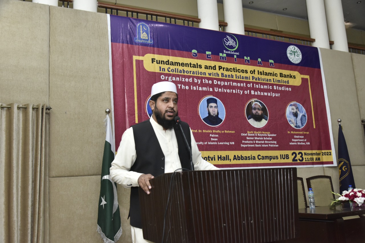 Seminar on the "Fundamentals and Practices of Islamic Banks" In Collaboration with Bank Islami Pakistan Limited Organized by the Department of Islamic Studies The Islamia University of Bahawalpur.