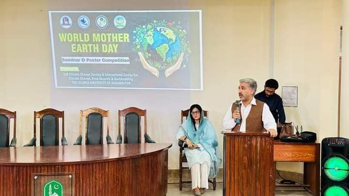Seminar on "World Mother Earth Day" was conducted at Faculty of Agriculture and Environment on May 17, 2024 being organized by the IUB Climate Change Society and International Center for Climate Change, Food Security & Sustainability (ICCFS) Collebrate with IUB Agrarians Society at The Islamia University of Bahawalpur.