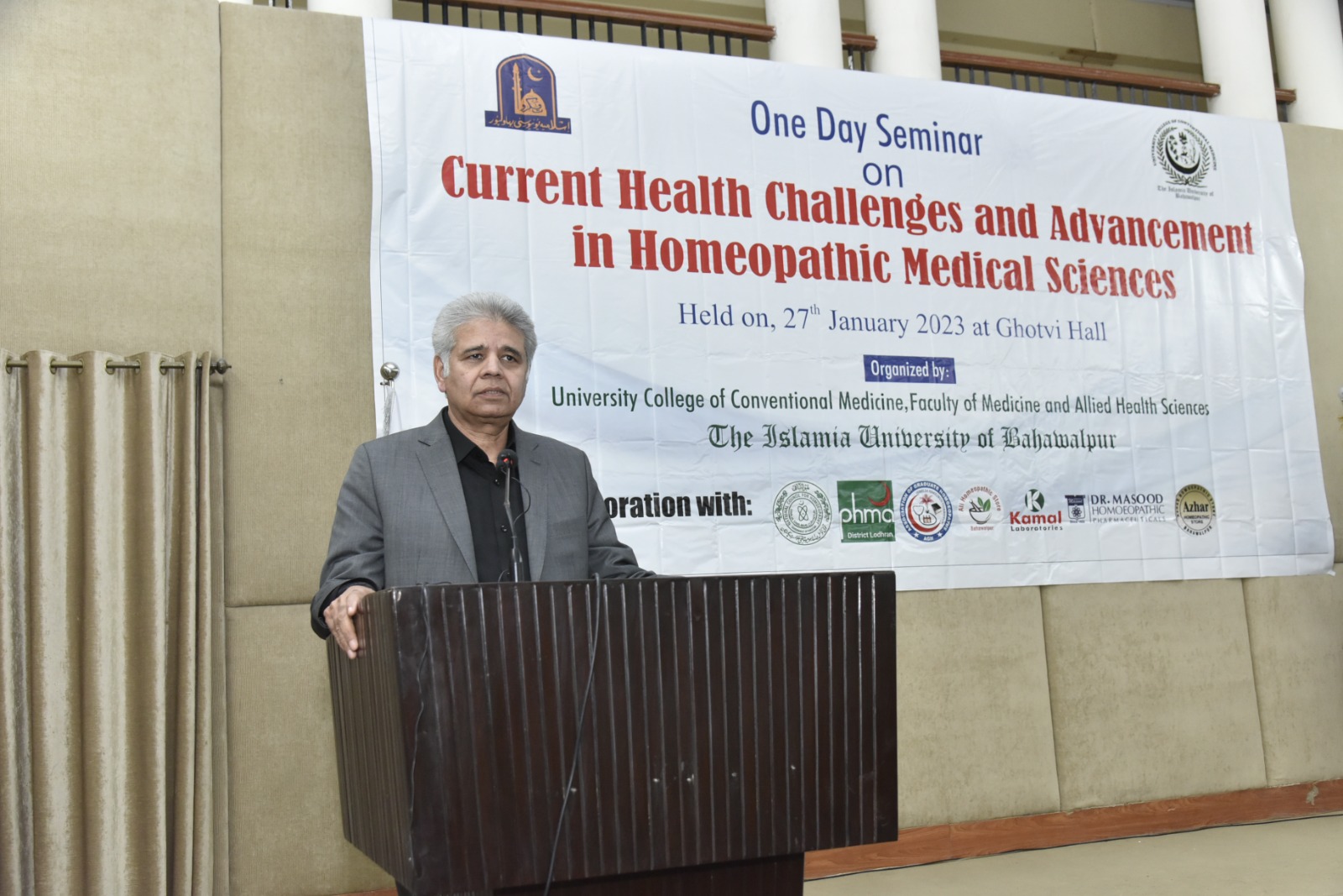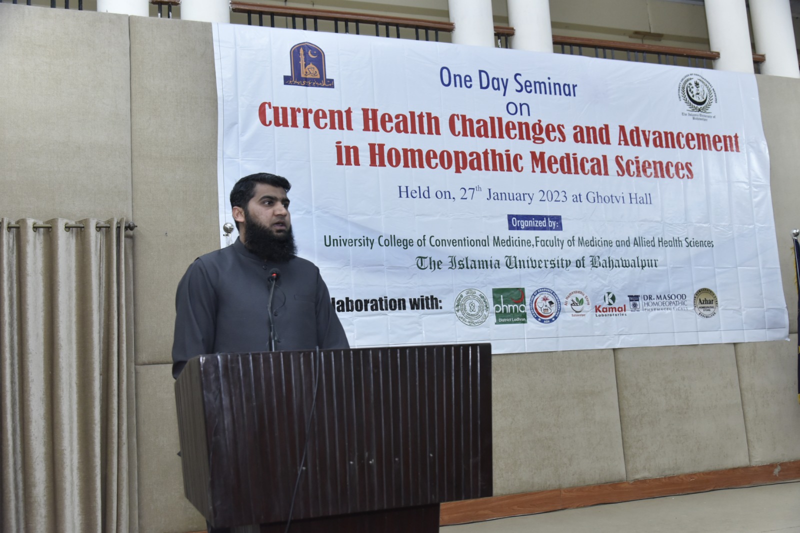 University College of Conventional Medicine IUB hosted a successful seminar entitled "Current Health Challenges and Advancements in Homeopathic Medical Sciences" venues at Ghotvi Hall. The seminar was honored by the presence of the chief guest, H.Dr. Ali Muhammad, HDr. Rao Ghulam Murtaza (President National Council For Homeopathy), Dr. Hafiz Muhammad Asif (Principal UCCM,IUB).