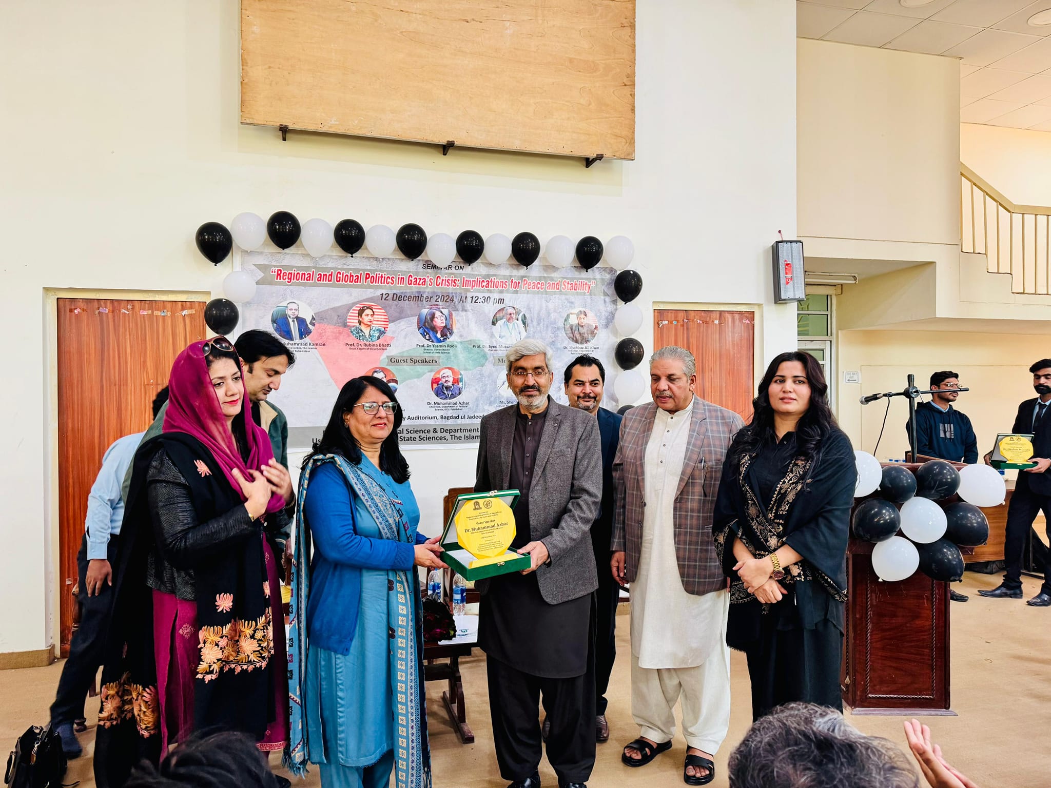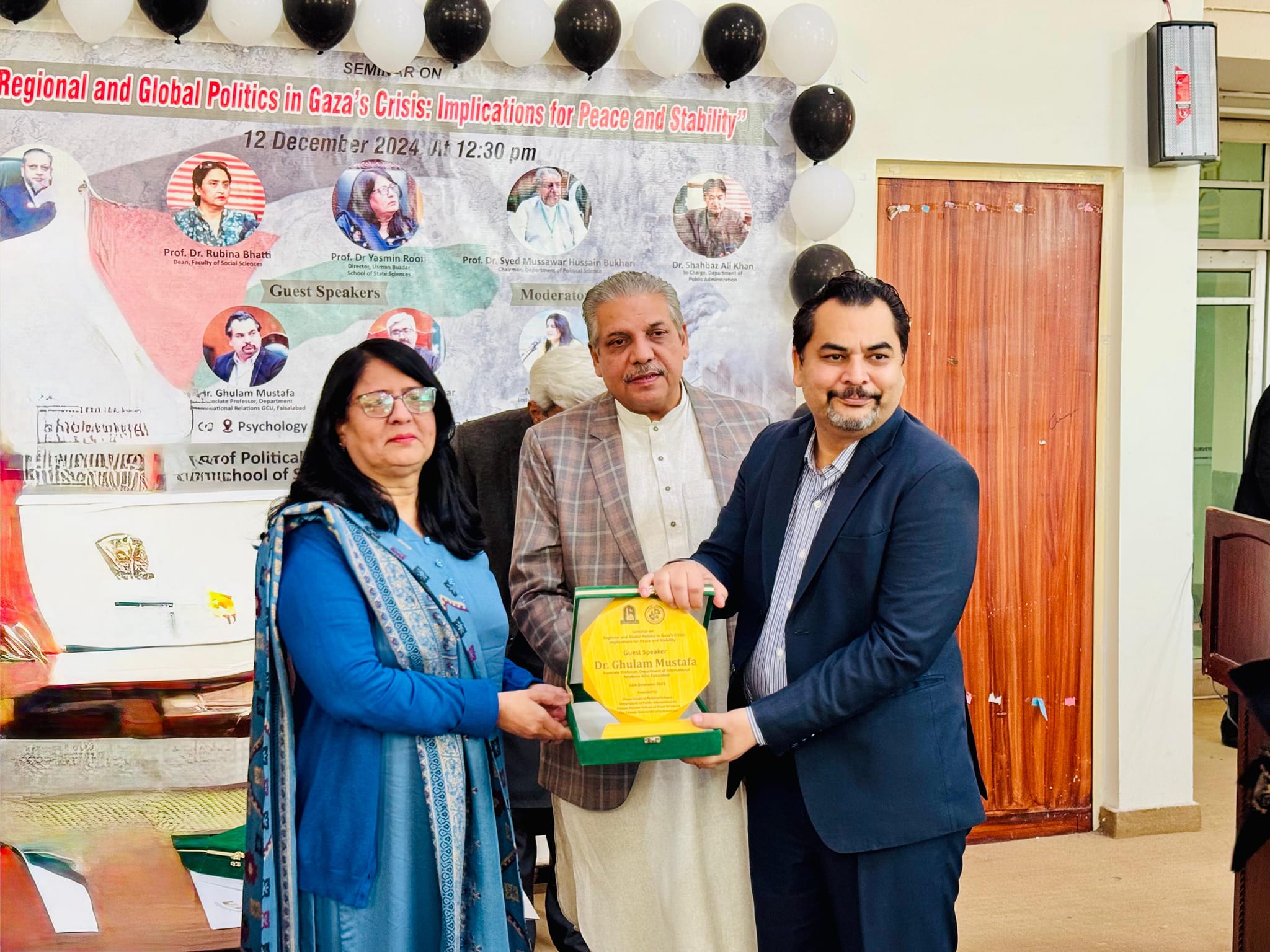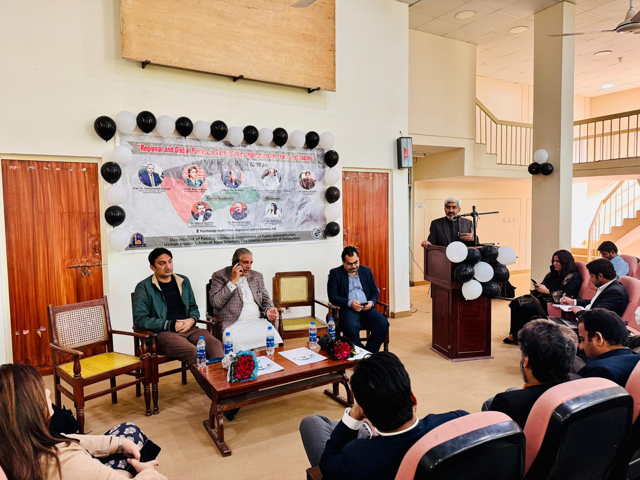 A seminar was held at the Faculty of Social Science, IUB, titled "Regional and global politics in Gaza’s Crisis: Implications for Peace and Stability.” The Usman Buzdar School of State Sciences, IUB, organized this seminar, which took place on December 12, 2024.