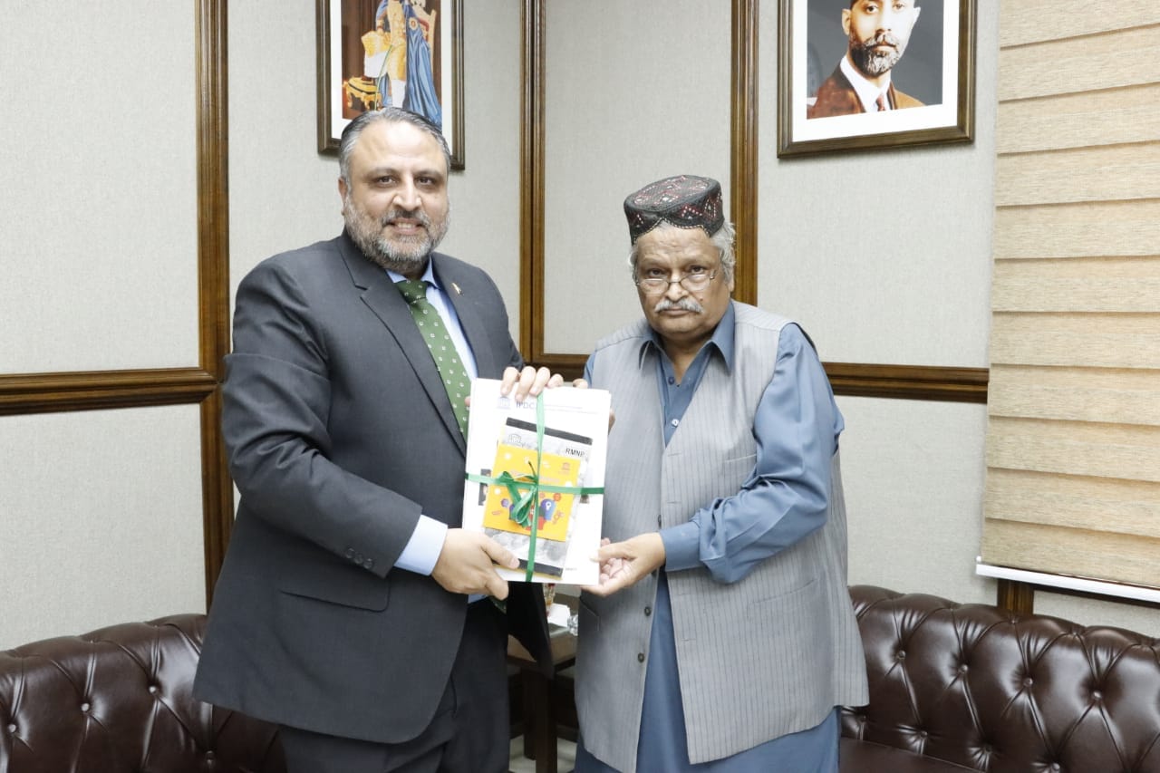 Senior Journalist Ehsan Ahmad Saher met the worthy Vice Chancellor Engr. Prof. Dr. Athar Mahboob. He presents UNESCO Resource Material for faculty and students to Worthy Vice Chancellor.