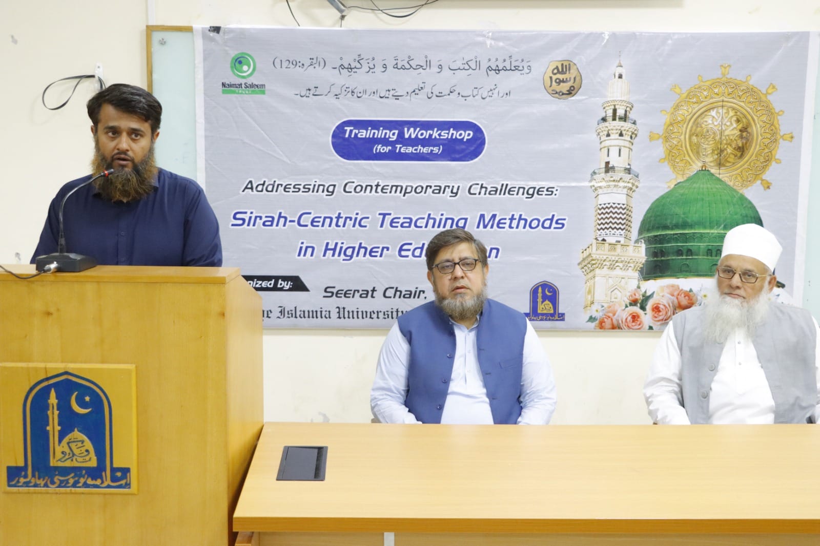 The sixth and last day of the training workshop for teachers was organized by Seerat Chair , IUB was held on May 21, 2024. In which the teachers of the Faculty of Management Sciences benefited from the training workshop under the chairmanship of Professor Dr. Jawad Iqbal, Dean of the Faculty of Management Sciences. 1400 teachers of the IUB benefited from the workshop