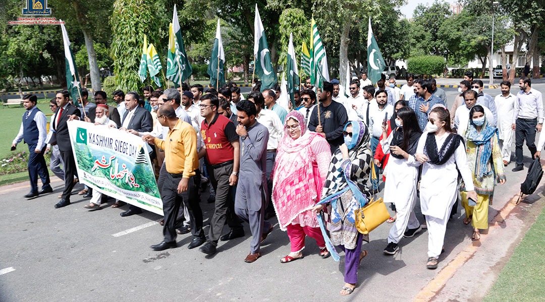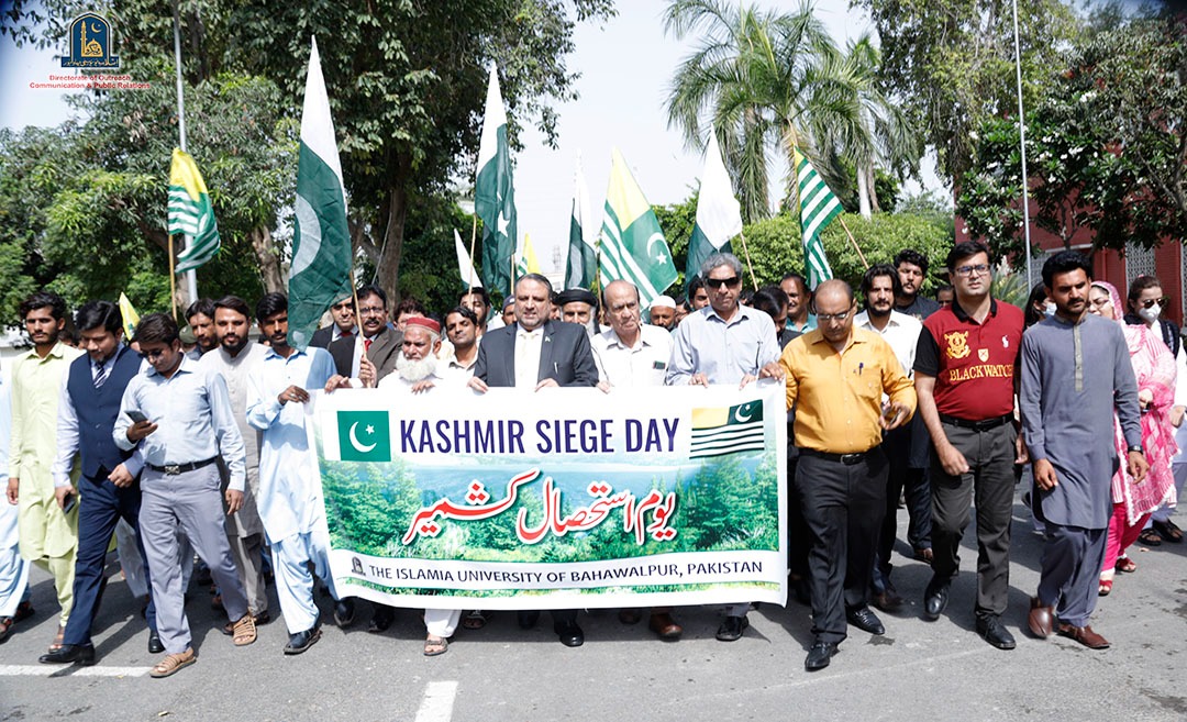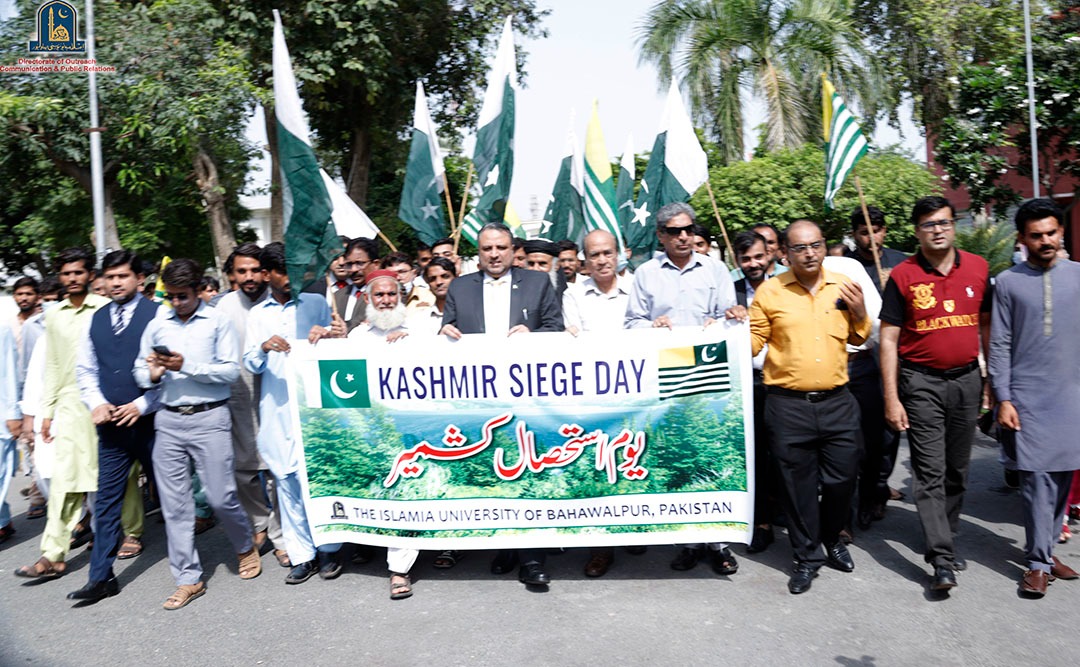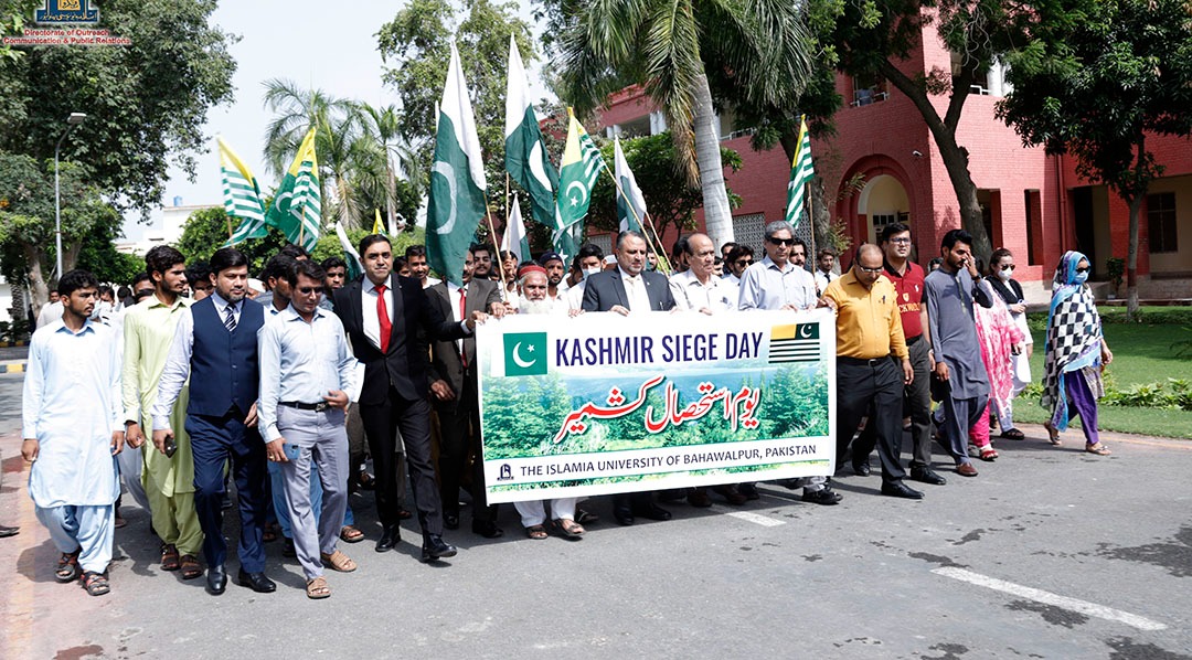 Engr. Prof. Dr. Athar Mahboob Vice Chancellor led the Kashmir Siege Day Walk participated by the faculty, officers and students at Abbasia Campus. IUB students and employees also participated in the rally organized by the District Administration at Fareed Gate Bahawalpur