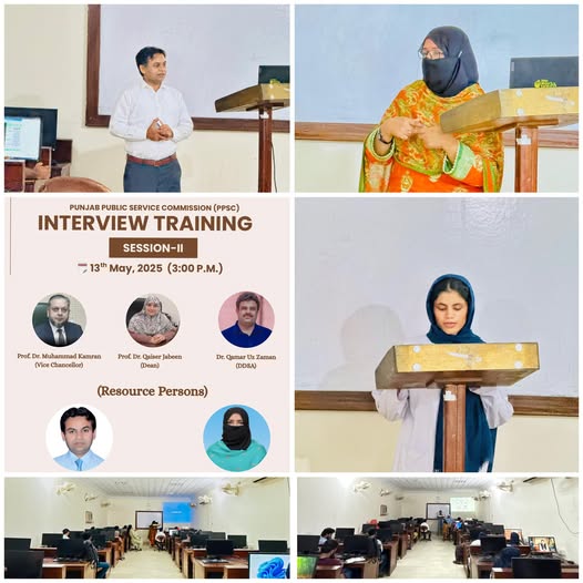 The Islamia University of Bahawalpur is pleased to share the successful conduct of Punjab Public Service Commission (PPSC) Interview Training, Session II, held on 13th May, 2025 organised by the Faculty of Pharmacy under the visionary leadership of Prof. Dr. Qaiser Jabeen, Dean, Faculty of Pharmacy and Dr. Qamar Uz Zaman, Deputy Director Student Affairs (DDSA).