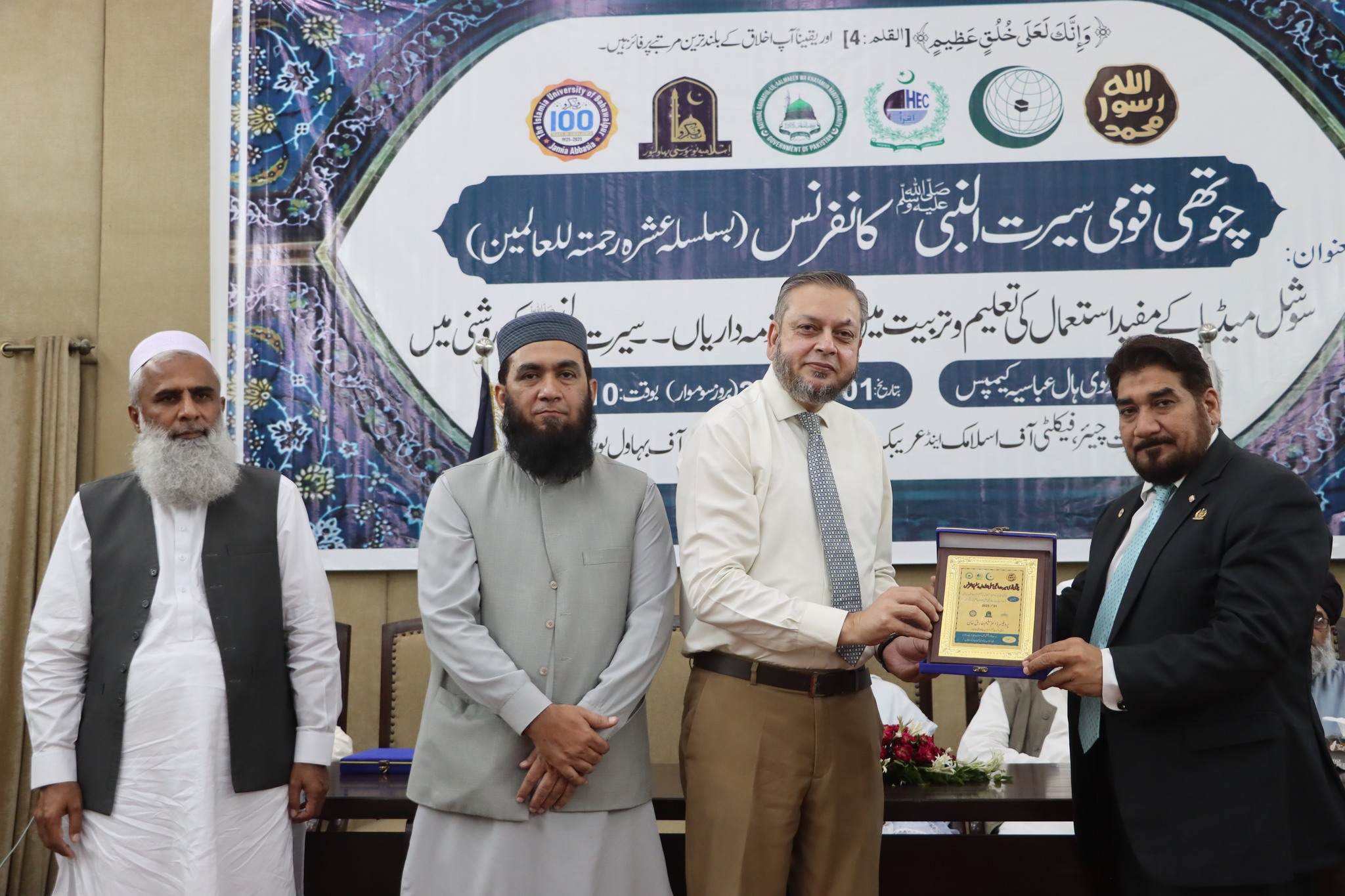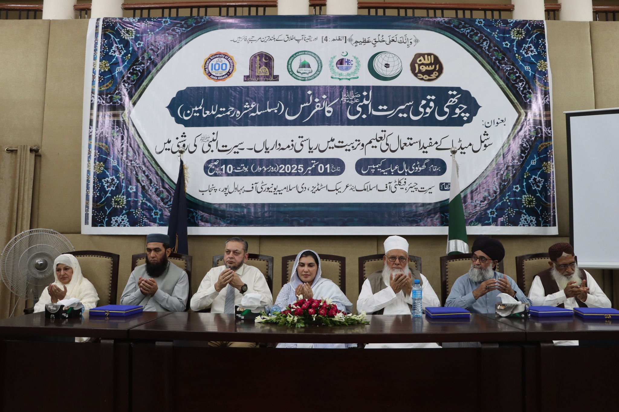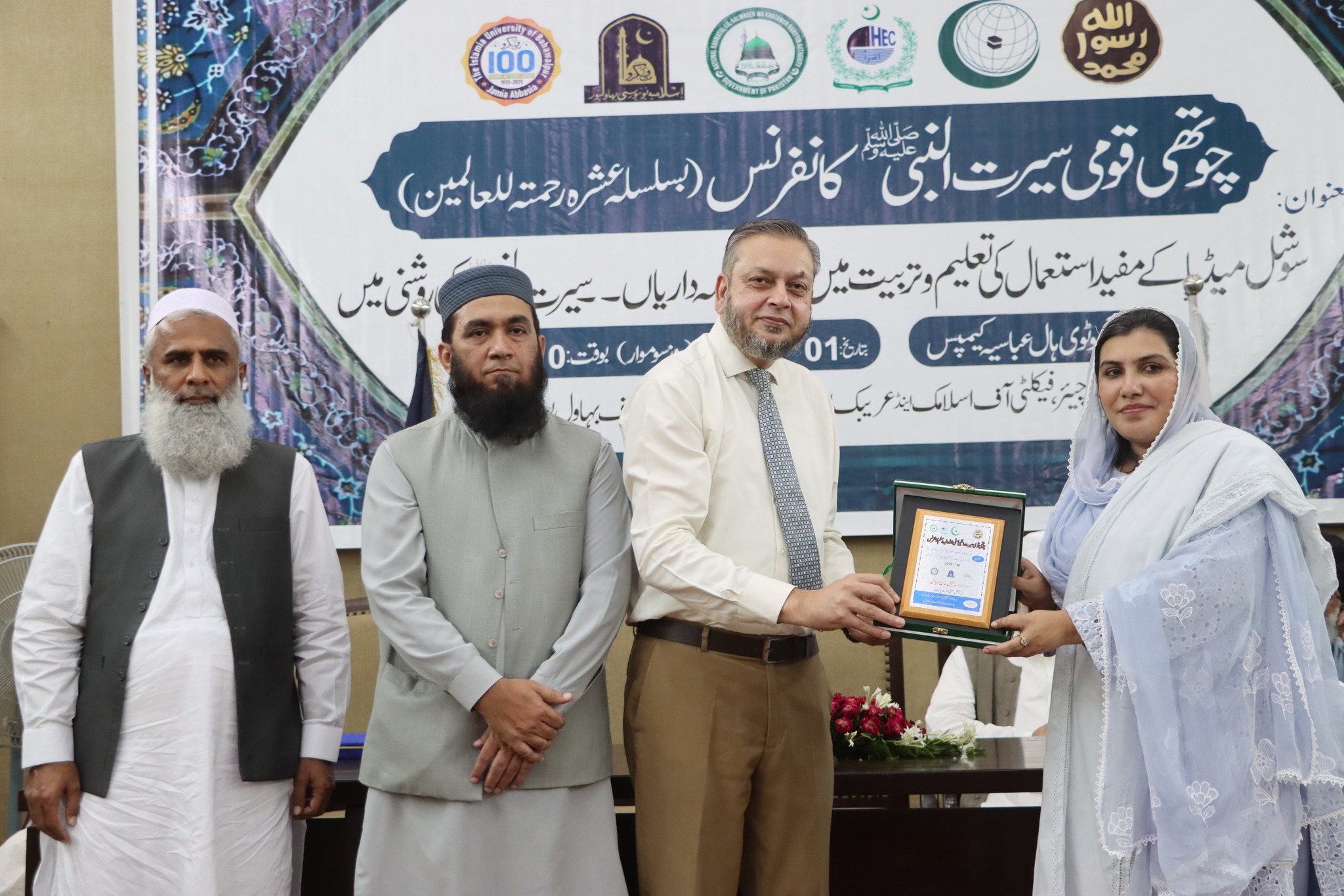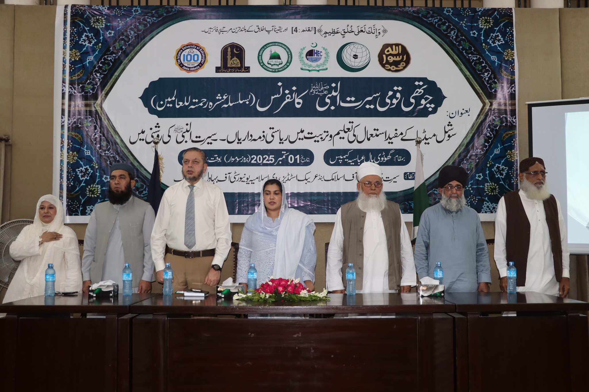 01 Sep 2025: The fourth National Seerat-un-Nabi (PBUH) Conference was organized by the Islamia University of Bahawalpur in collaboration with the Higher Education Commission of Pakistan, Islamic Ideology Council and Rahmatul-lil-Alameen (PBUH) Authority Pakistan in connection with the Ashra-e-Shan-e-Rahmatul-lil-Alameen (PBUH) at Ghulam Muhammad Ghotvi Hall, Abbasia Campus.