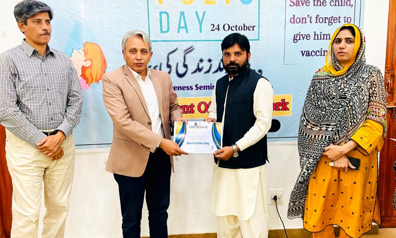 The Department of Social Work organized a commemorative event on World Polio Day on 24-10-2023. The event was chaired by Prof. Dr. Asif Naveed Ranjha, the Chairman of Social Work Department and was attended by faculty members from Social Work, Sociology and Anthropology departments. Naeem Asim, Head of Department of Public Health , IUB was Guest Speaker.