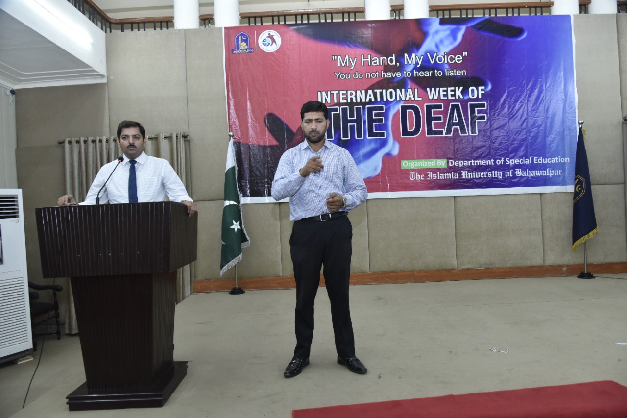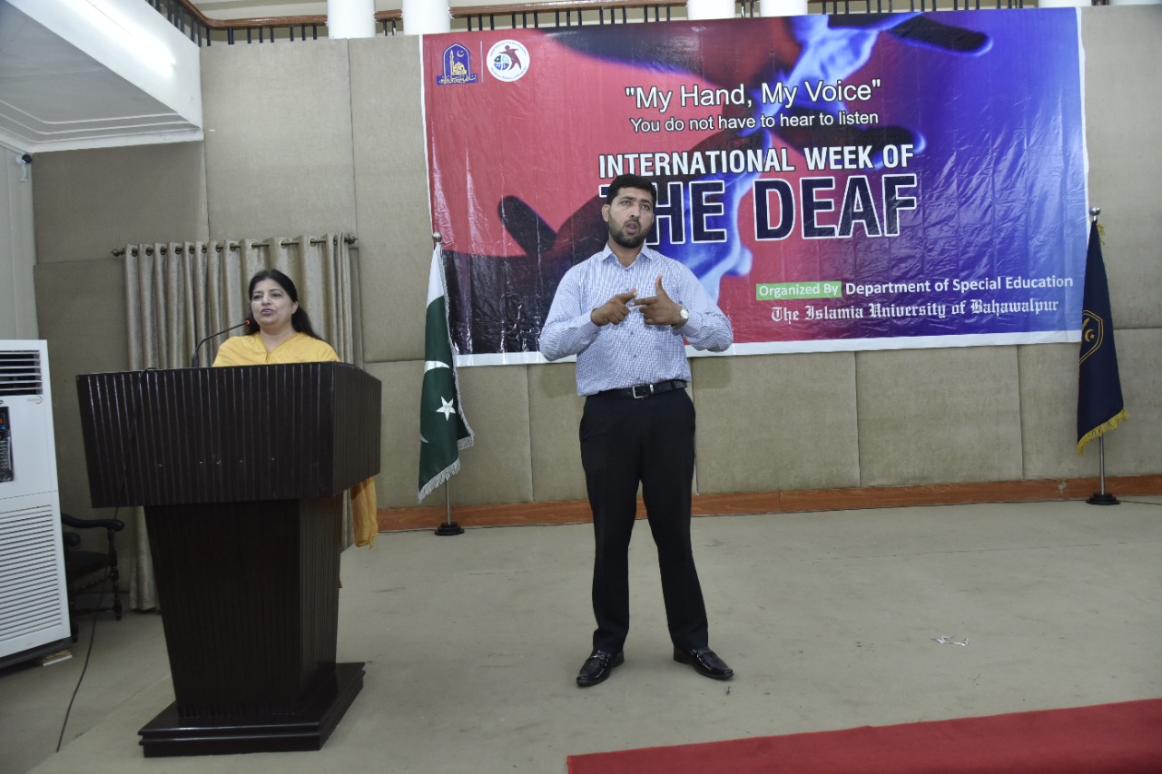 The Islamia University of Bahawalpur observed International Week of "The Deaf". Department of Special Education, IUB organized a seminar for special students at Ghulam Muhammad Ghotvi Hall, Abbasia Campus, IUB.
