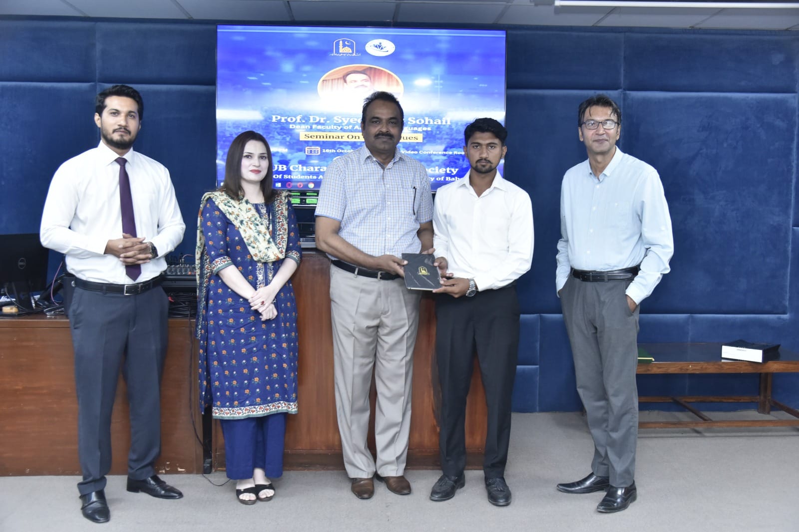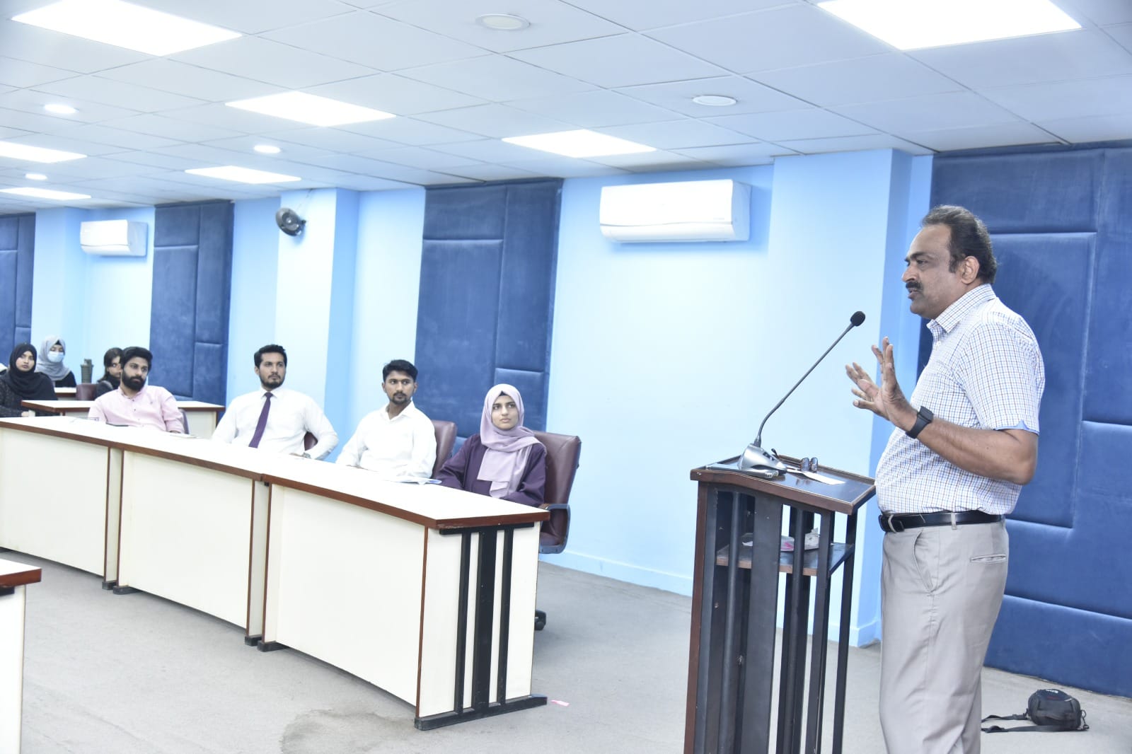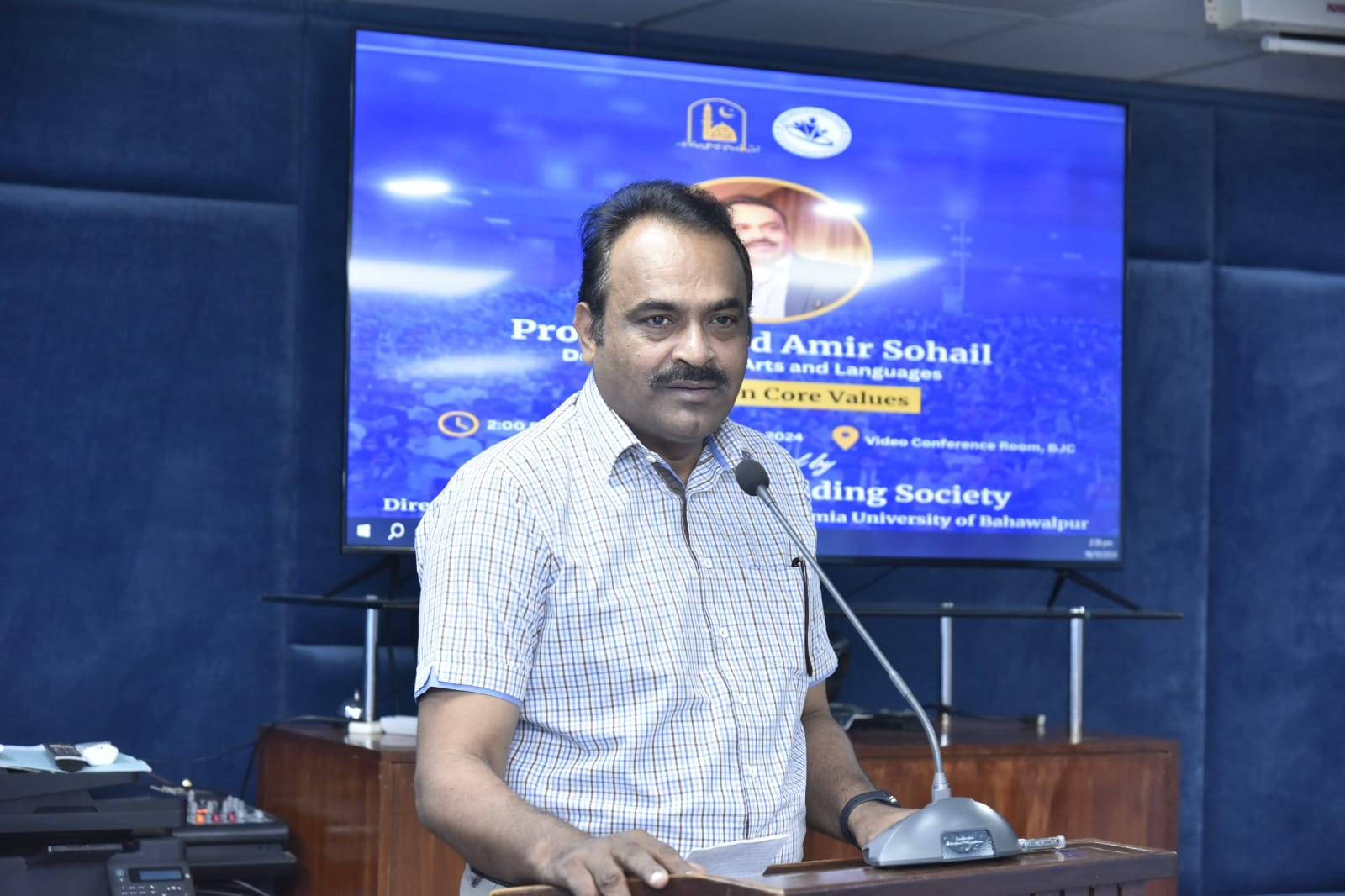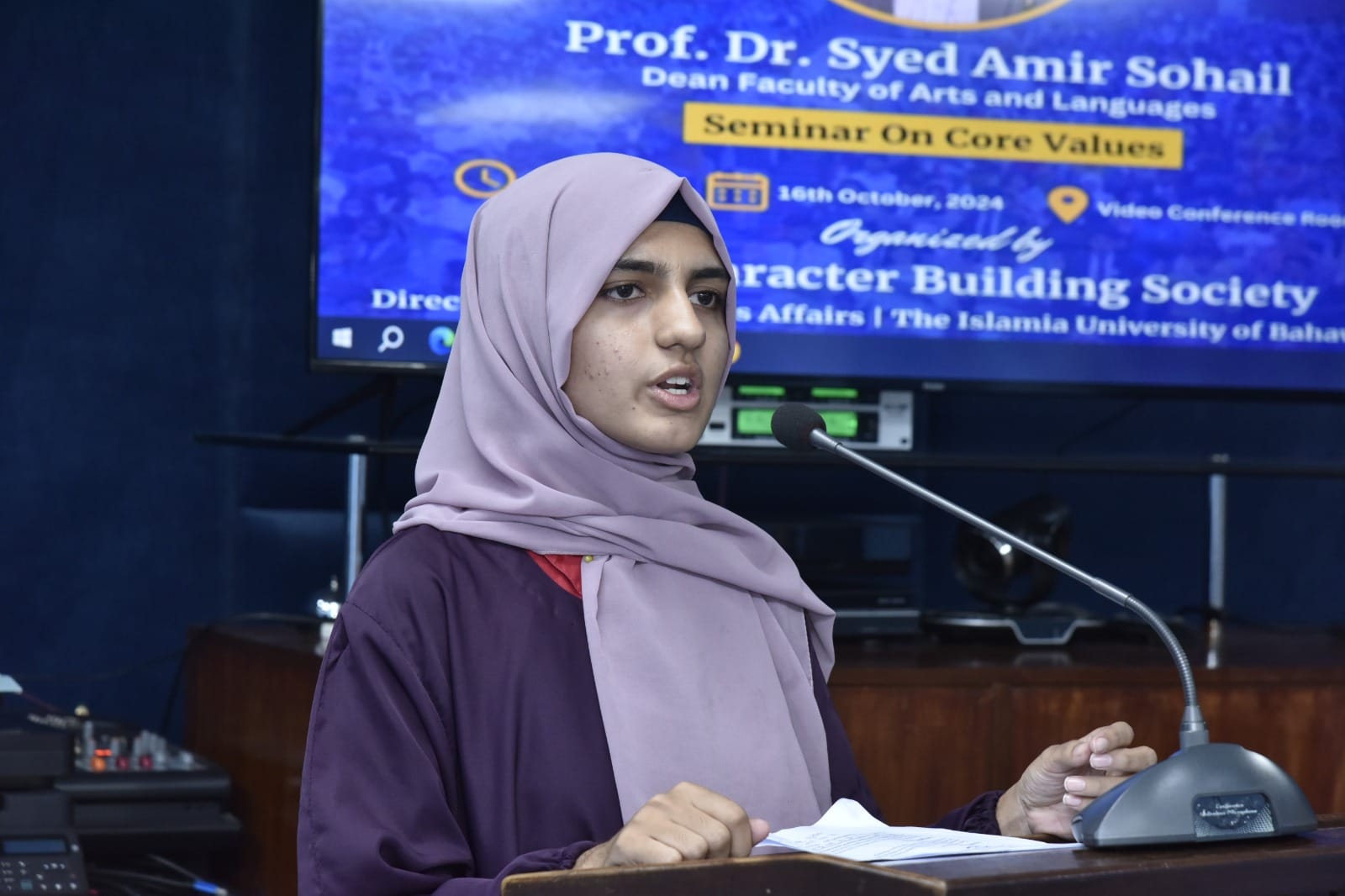The IUB Character Building Society is delighted to organize the seminar on the importance of core values. The session began with a welcome note from Advisor Dr. Noveen Javed, who welcomed the guest speakers, co-advisors, faculty members, and all attendees. Dean Faculty of Arts and Languages Professor Dr. Amir Sohail is the chief guest in this seminar.