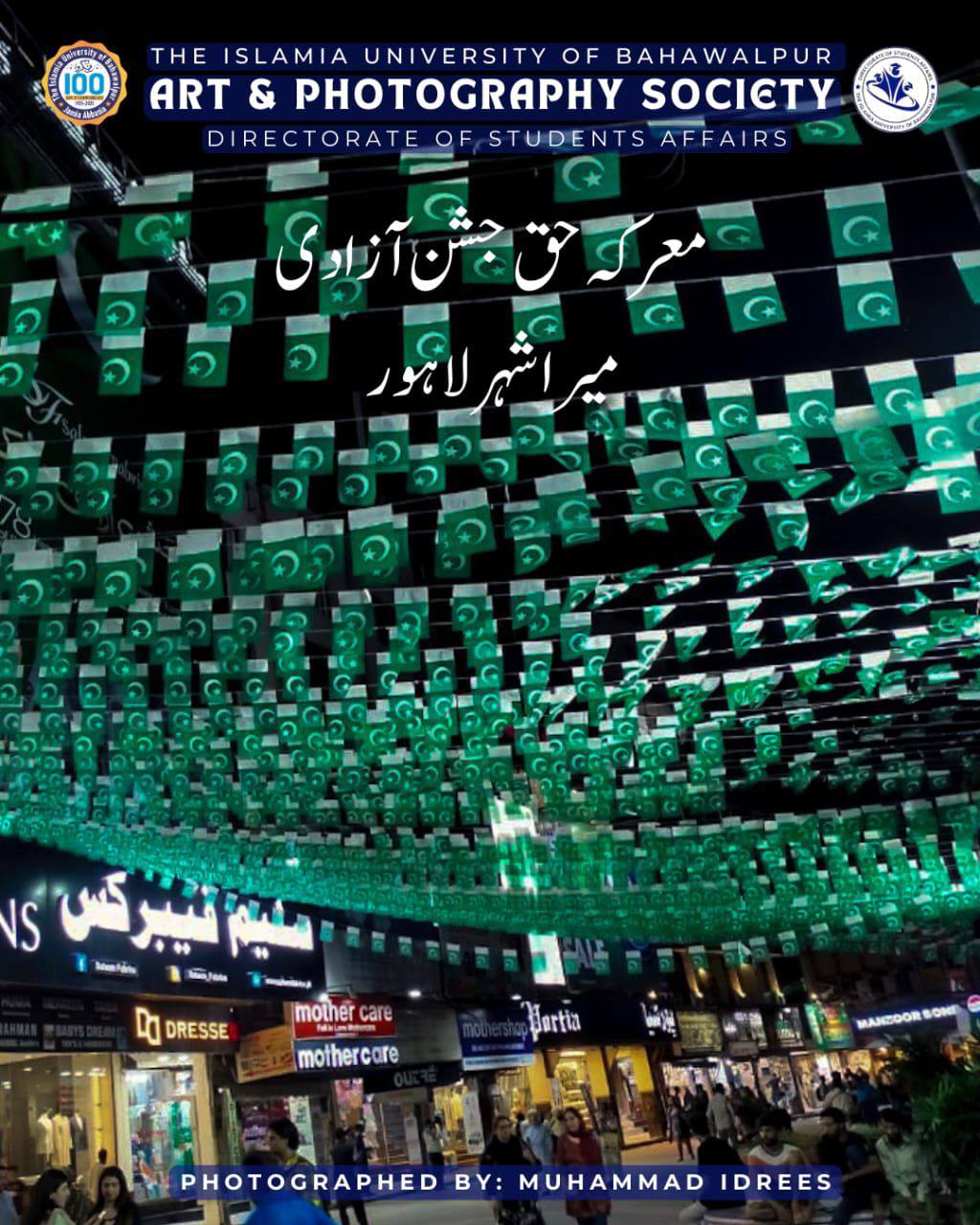 The IUB Art and Photography Society organised an e-exhibition showcasing how every city celebrates liberation. Advisor (Mr. Farjad), President, Senior Vice President, and General Secretary, took their time curating this digital gallery presenting Pakistan and it's cities.
