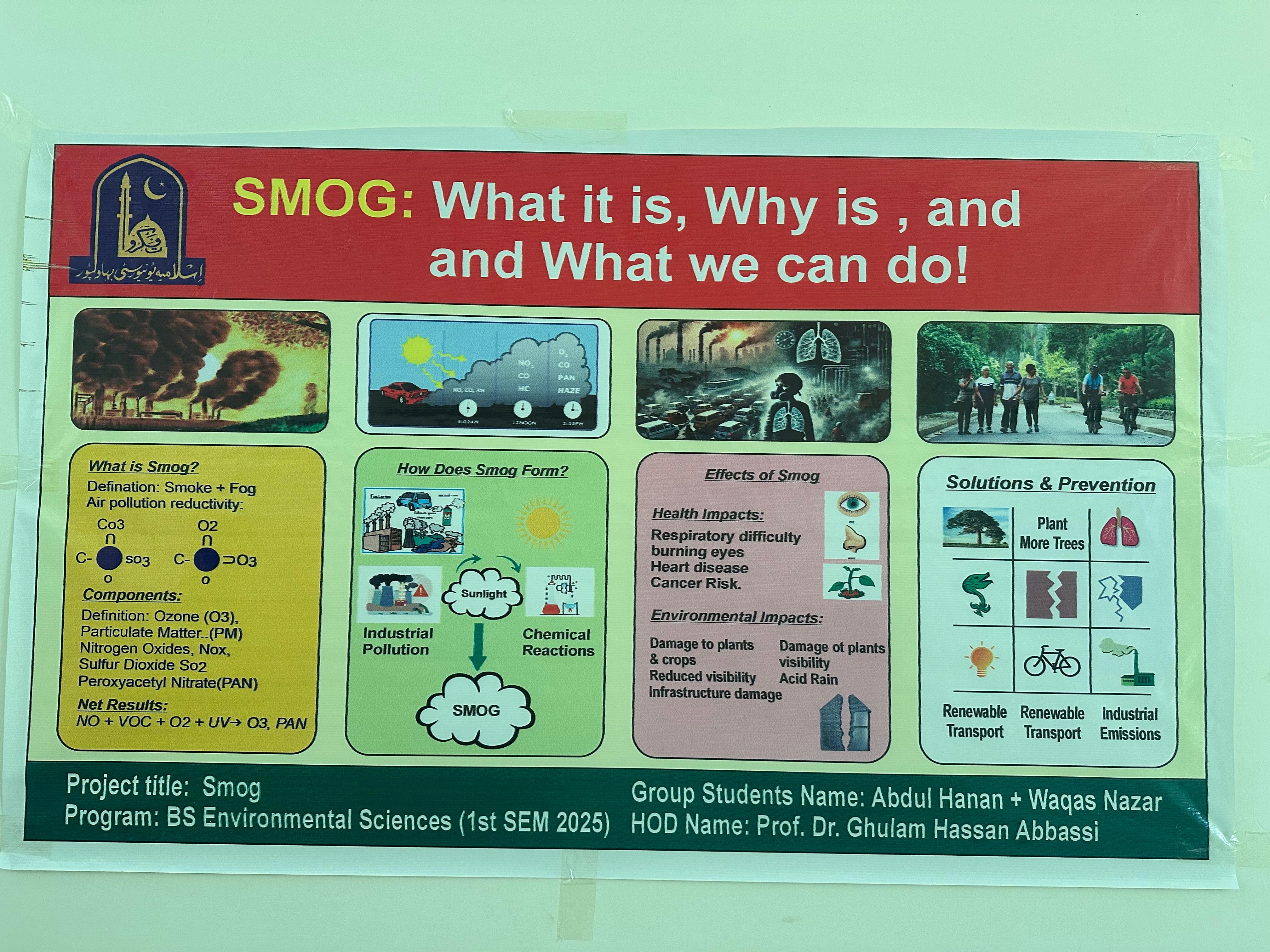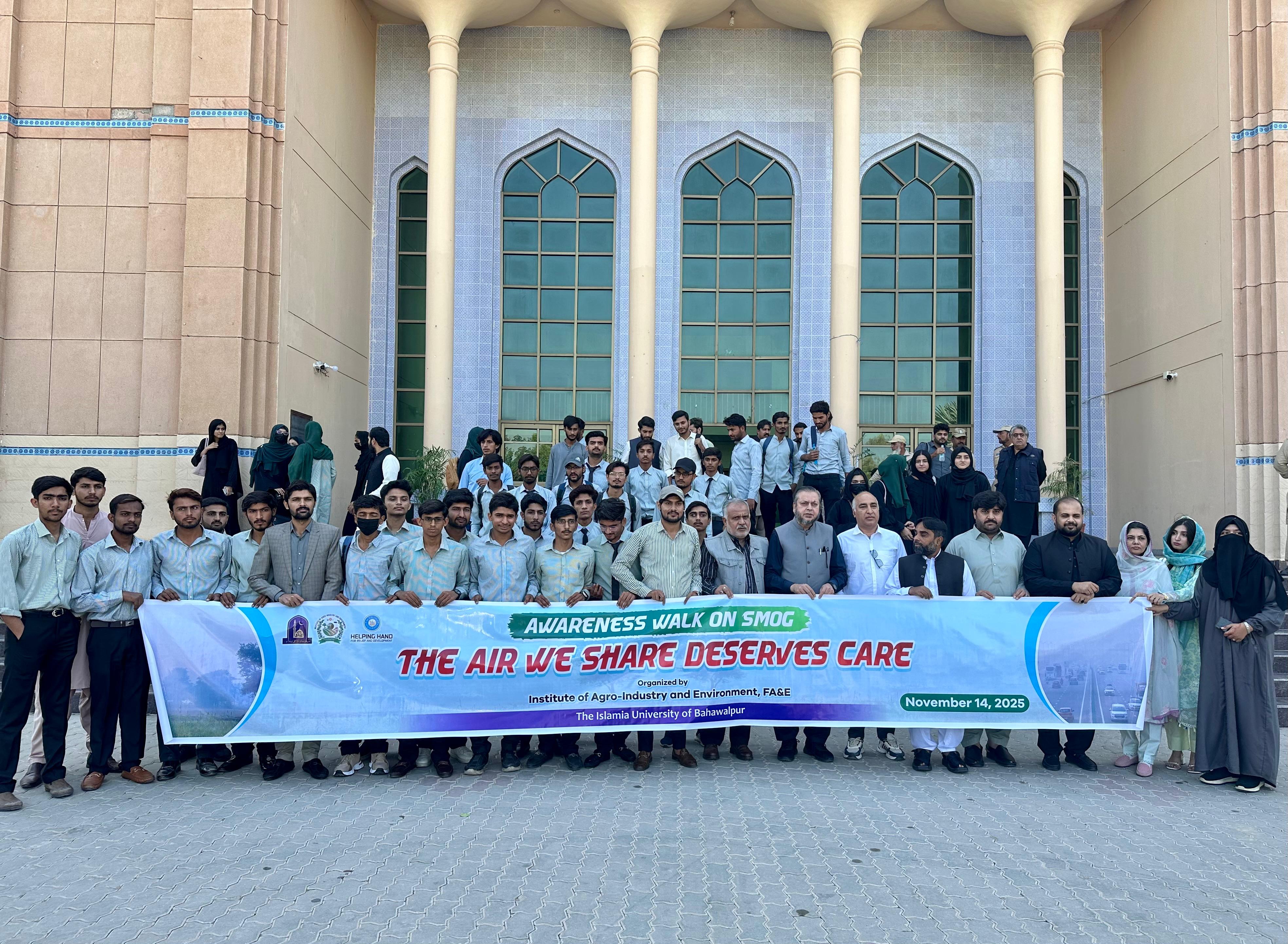 The Institute of Agro Industry, the Faculty of Agriculture and Environment, Islamia University of Bahawalpur hosted a Smog Awareness Walk, Seminar, and Poster Display to highlight the severe hazards of smog and promote eradication strategies.