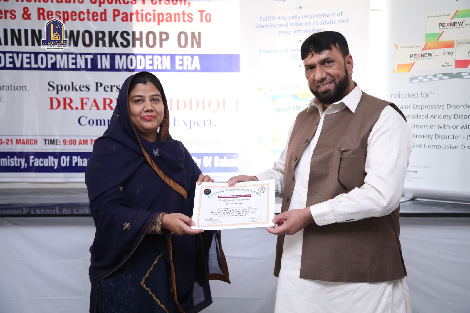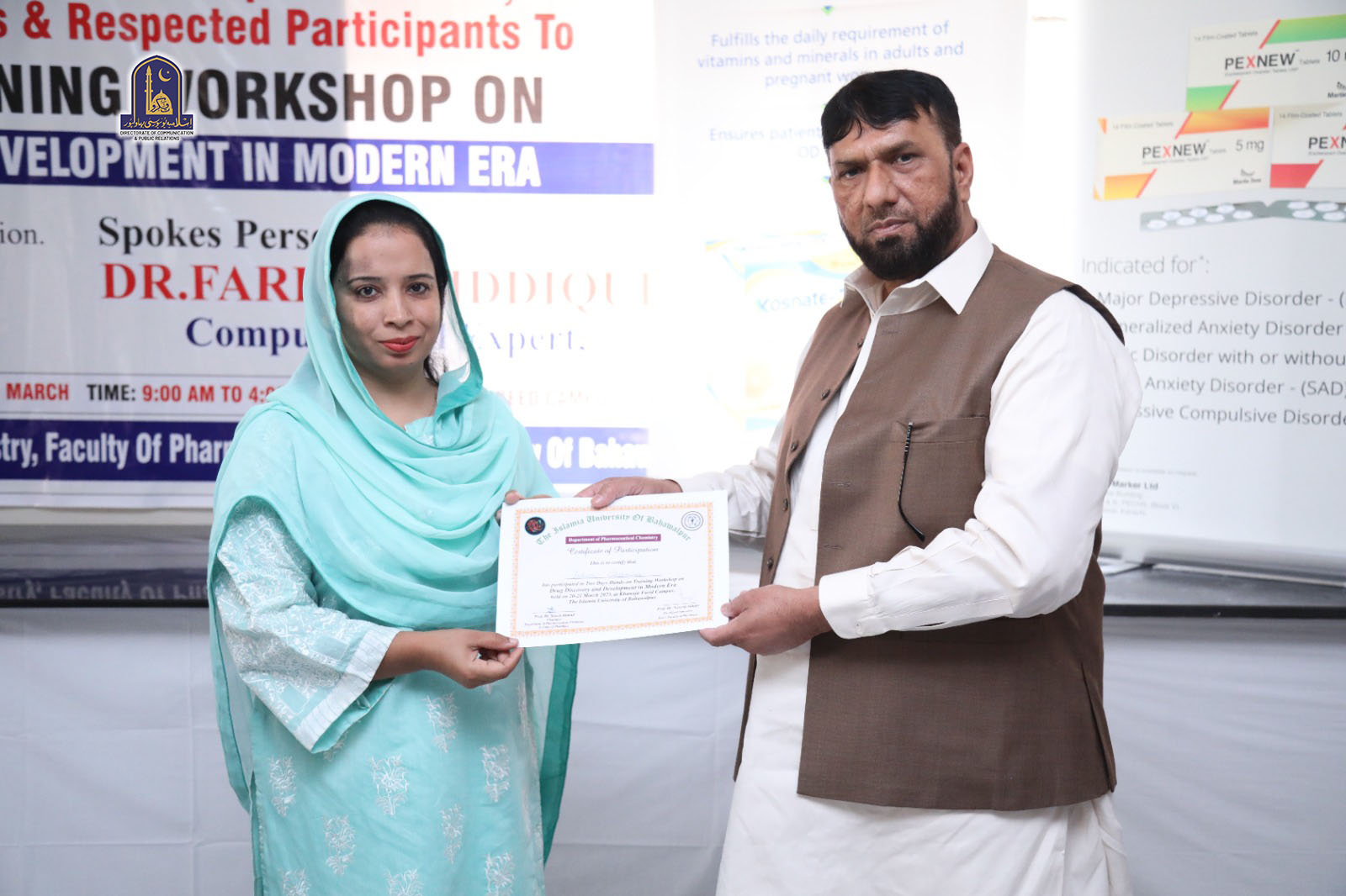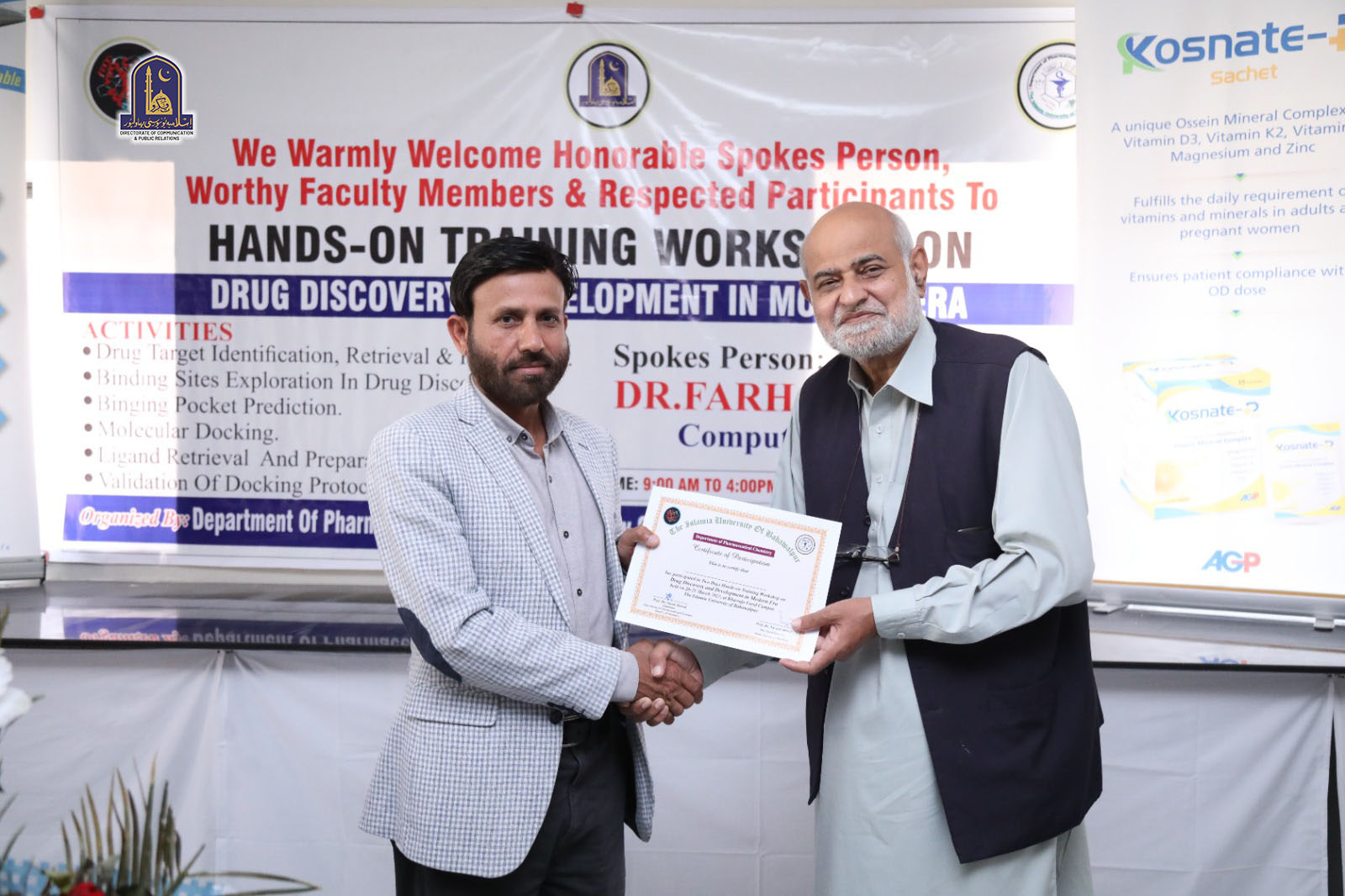 A Two Days Hands-On Training Workshop Titled “Drug Discovery and Development in Modern Era” was conducted at Department of Pharmaceutical Chemistry, Faculty of Pharmacy, Khawaja Fareed Campus, The Islamia University of Bahawalpur, under the kind supervision of Prof. Dr. Naveed Akhtar (Dean, Faculty of Pharmacy / Pro vice-chancellor)