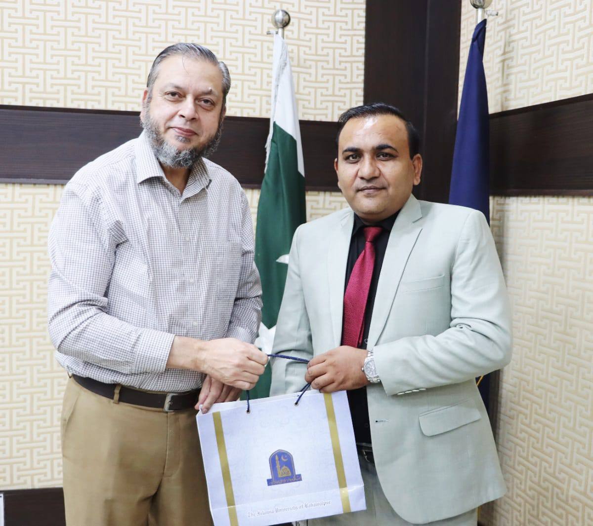 Vice Chancellor Prof. Dr. Zahid Hussain Khand and Prof. Dr. Zamir Ahmed Abro, Dean, Faculty of Design, Aror University of Art, Architecture, Design & Heritage, Sukkur, Sindh, visited the Islamia University of Bahawalpur.