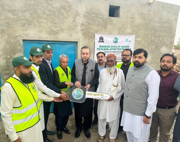 Vice Chancellor of Islamia University of Bahawalpur, Prof. Dr. Muhammad Kamran handed over the keys of five newly constructed houses to flood victims in Mari Qasim Shah, a suburb of Bahawalpur.