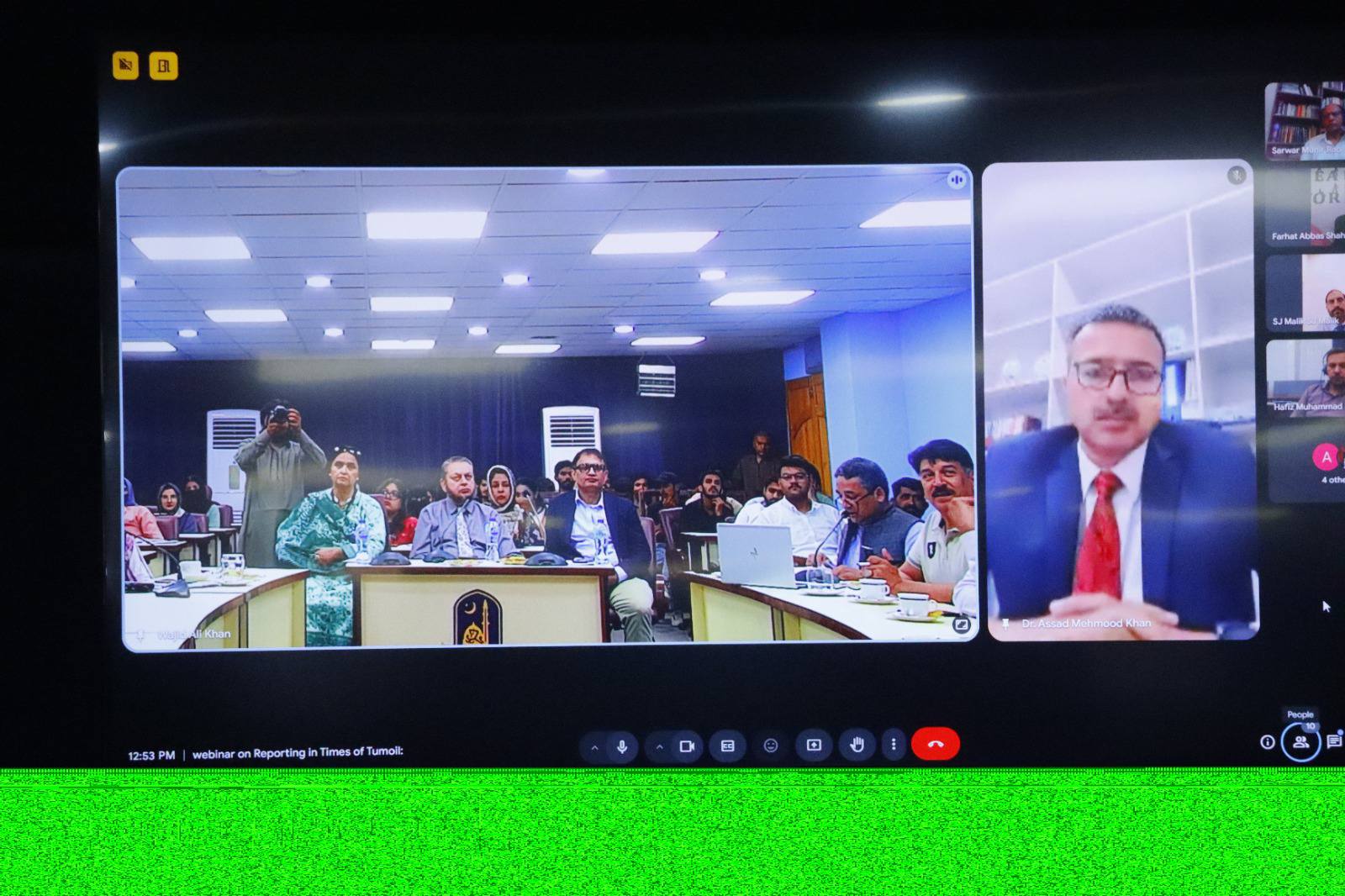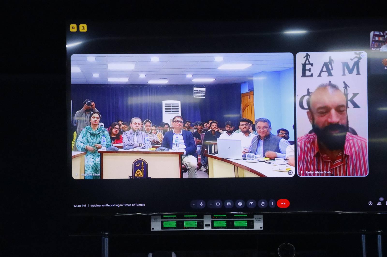 13 May 2025: Webinar titled “Reporting in Times of Turmoil: War, Conflict, and the of Responsible Journalism” organized by Department of Media & Communication Studies held today at KGF Auditorium, Baghdad-ul-Jadeed Campus, IUB.