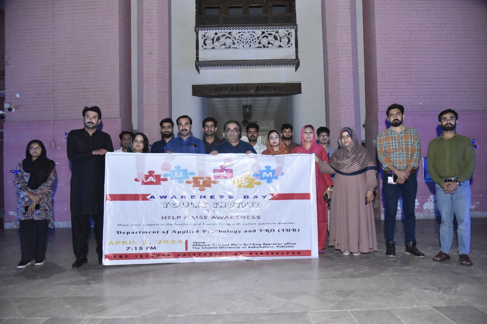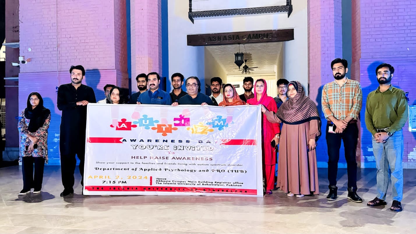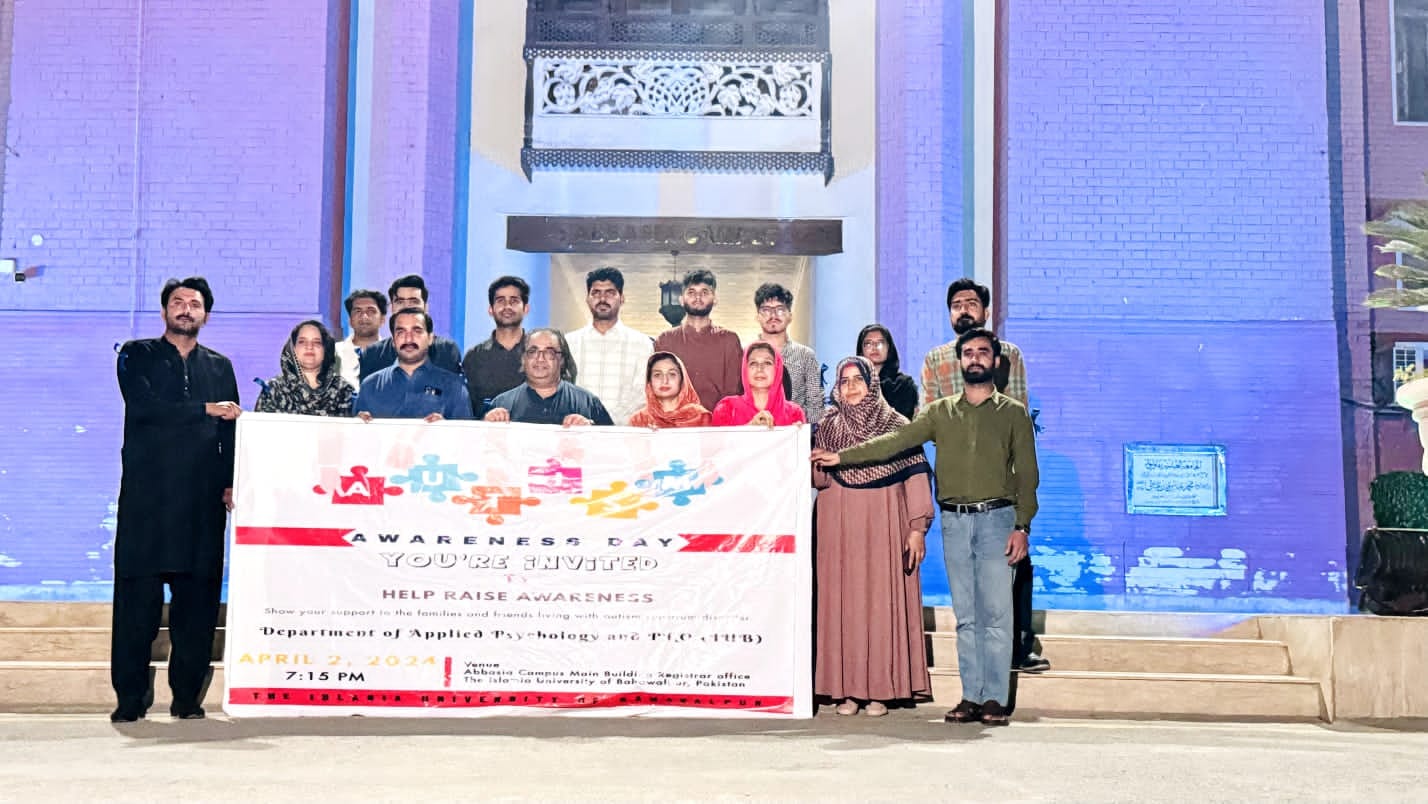 In pursuit of the Islamia University of Bahawalpur vision to build communities and participate in socio-economic development, the historic Abbasia Campus building was lit up in blue on the occasion of World Autism Awareness Day as a gesture to express solidarity towards the "person with autism" and their families. The World Autism Awareness Day is celebrated every year on April 2nd.