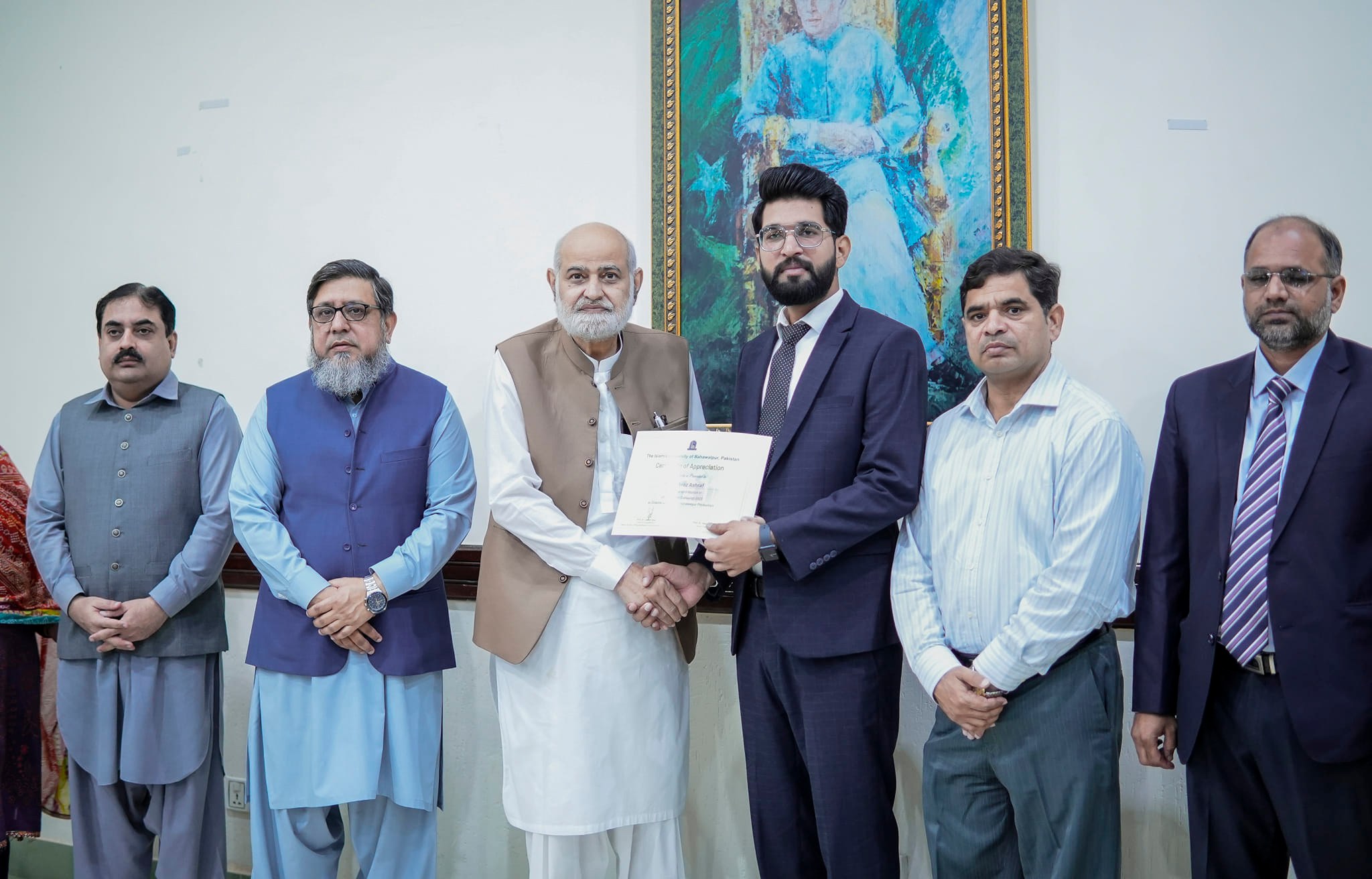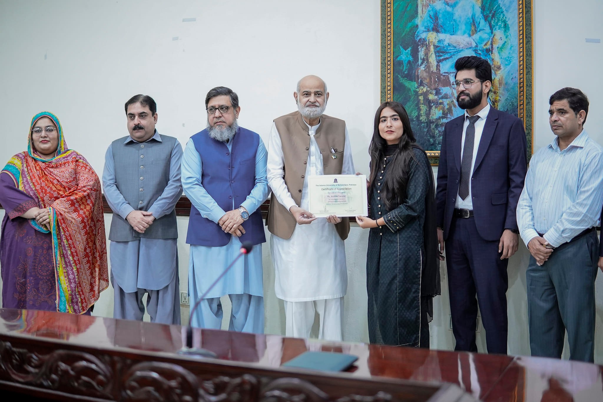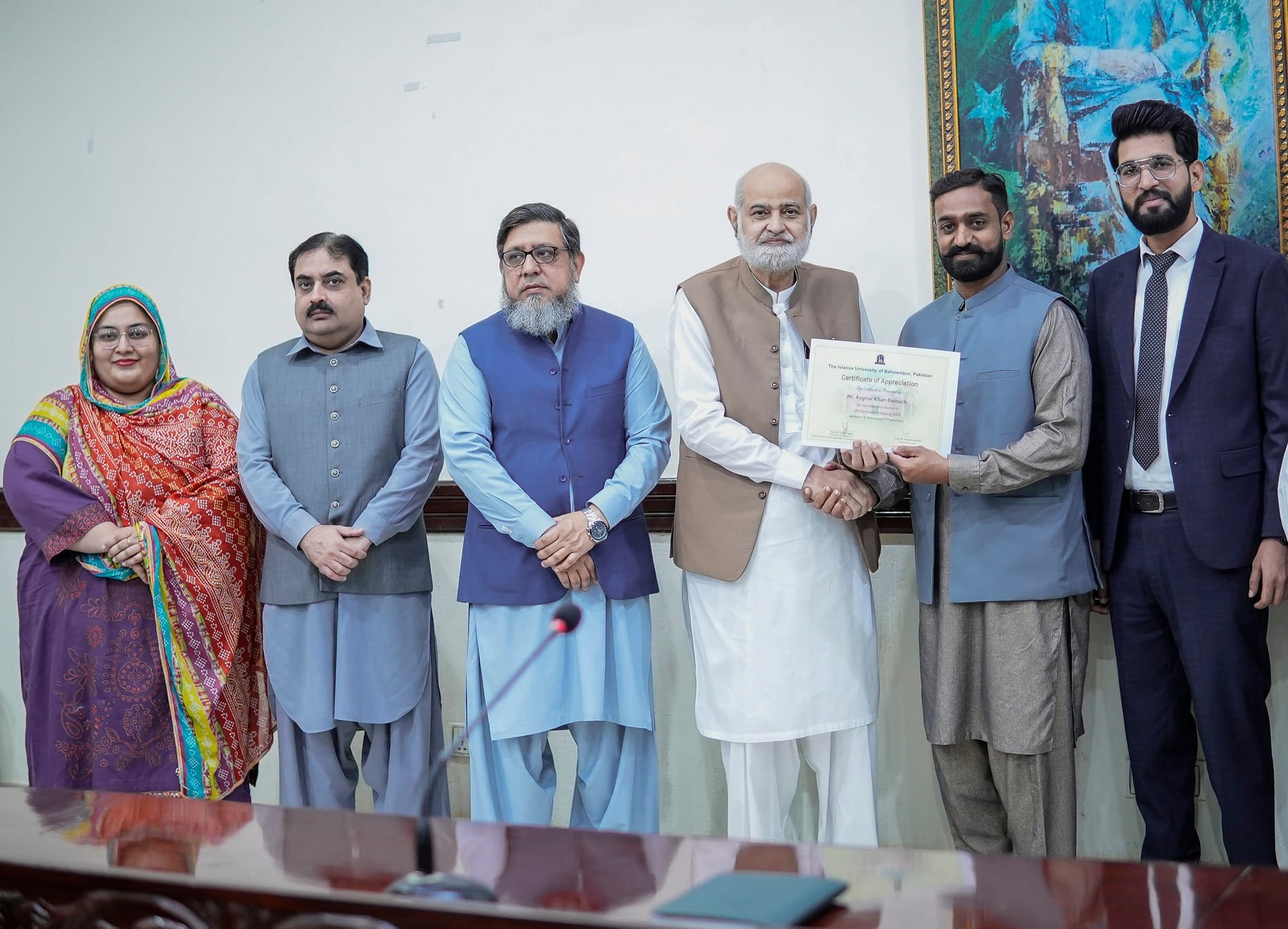 Prof. Dr. Naveed Akhtar, Vice Chancellor the Islamia University of Bahawalpur has praised the efforts of alumni and students in promoting a positive image of the university. The Vice Chancellor exchanged these views during the certificate distribution ceremony to alumni Shehroz Ashraf and his team members of BWP Production media group.