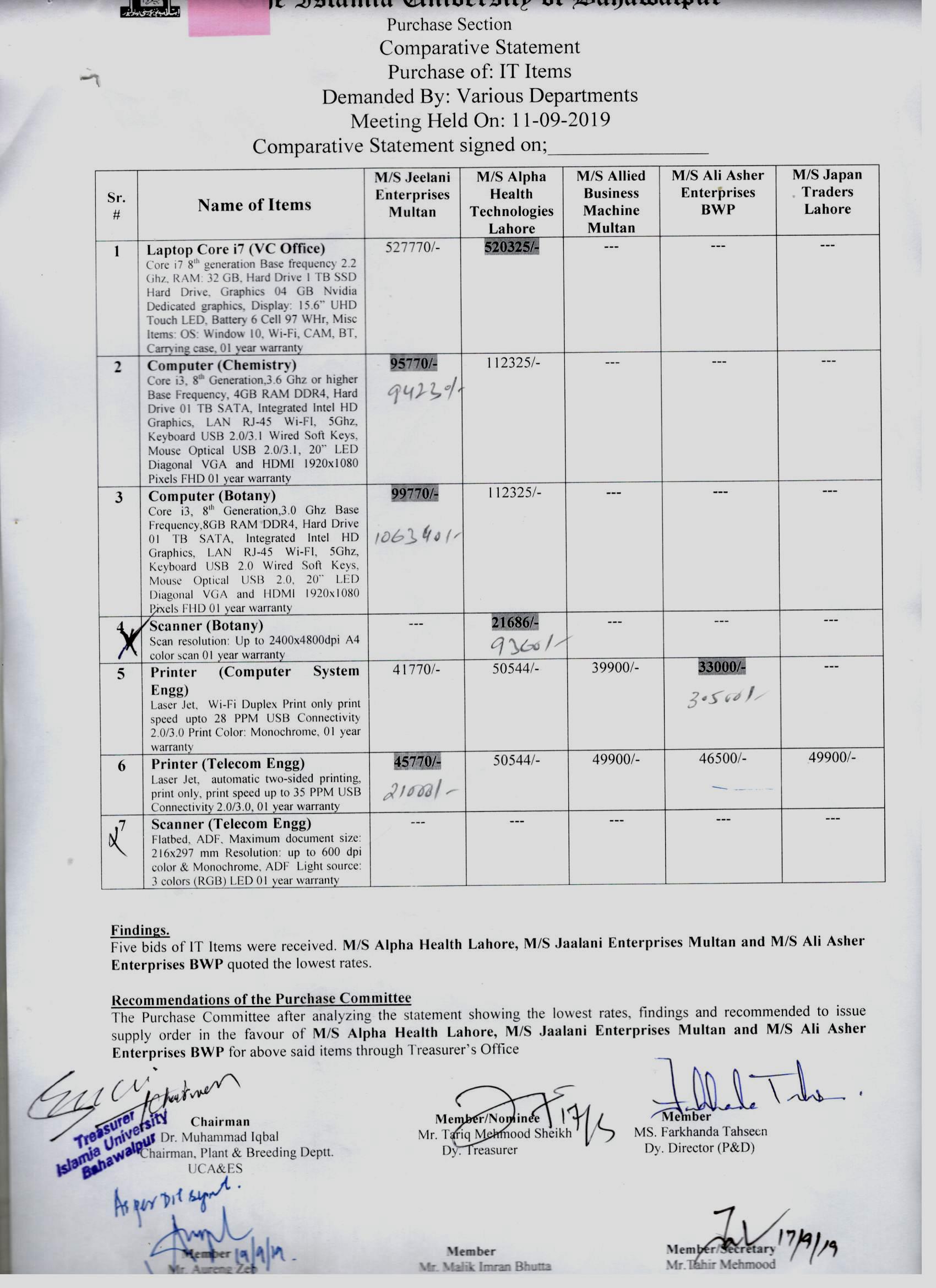 | Technical Evaluation Report of Machinery Items for Estate Care tender held on 05-11-2019 | Machinery Items for Estate Care | 2019-12-17 | 2019-12-28 | Closed | Treasurer Office | | — |