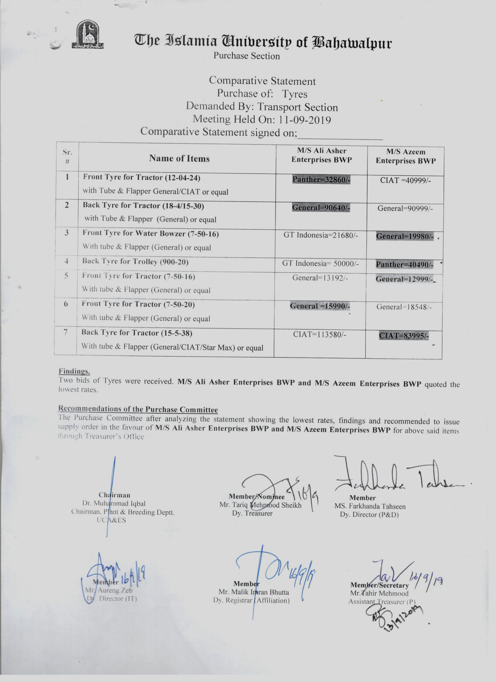 | Tender Notice | Providing Heavy Duty Tyres (With Tubes) for Buses | 2024-03-21 | 2024-04-04 | Closed | Rahim Yar Khan Campus | | |