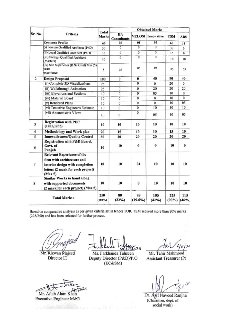 | Technical and Financial Evaluation Report | Consultant Selection Committee | 2019-11-14 | 2019-11-25 | Closed | Planning and Development Department | | — |